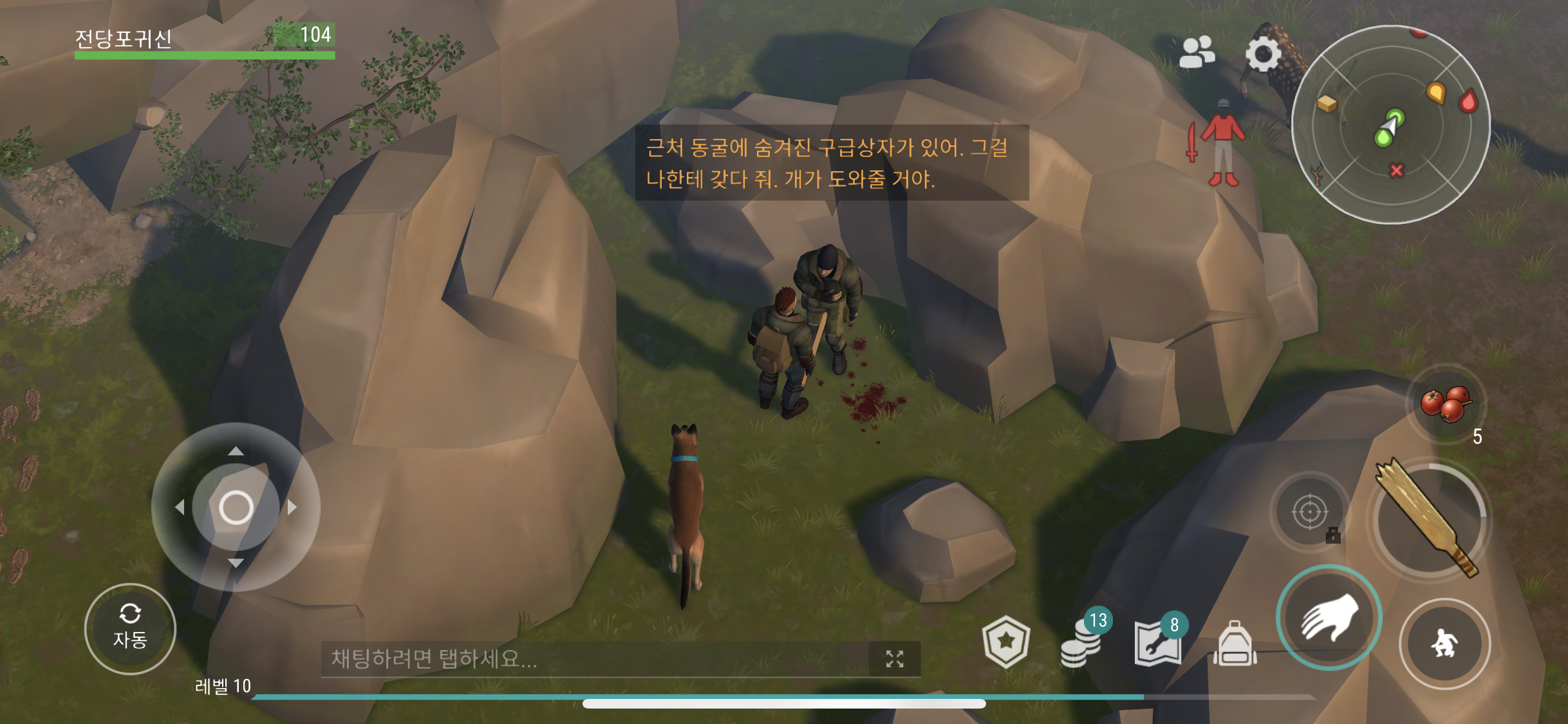 사실 마이클에게 치료를 해주고 나서 바로 캠프로 가면 되는 줄 알아서 나 홀로 캠프로 갔었는데 마이클은 찬천히 캠프로 복귀하고 나는 보다가드 역할을 해줘야 했던 것이다. 좀비나 늑대들이 덤볐던 것으로 기억한다.