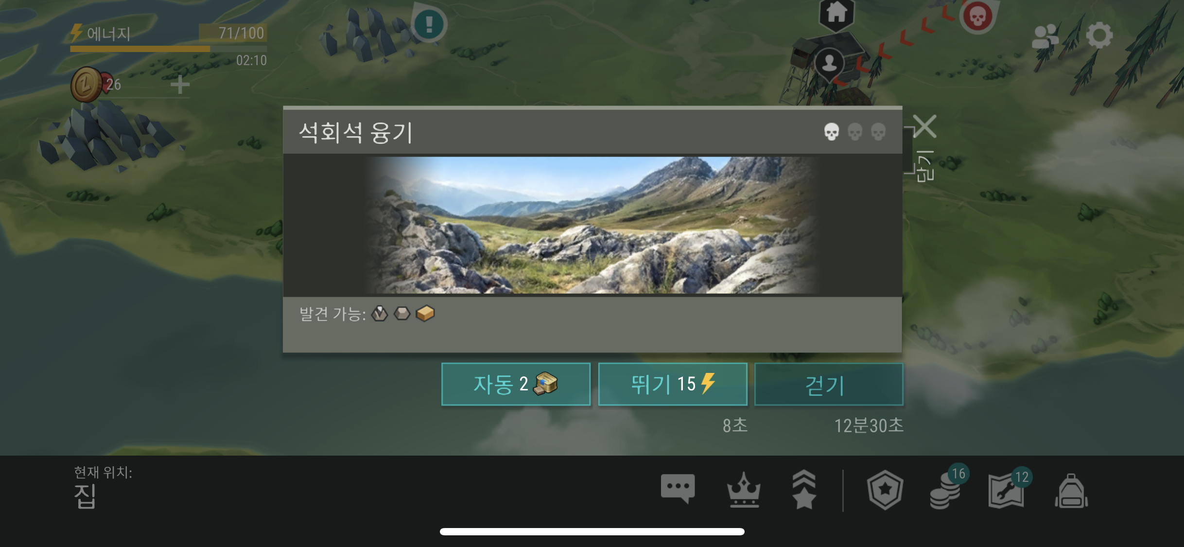 지구의 마지막날 생존 공략 석회석 융기의 경우 아주 간단하게 파밍 할 수 있는 수준이다.