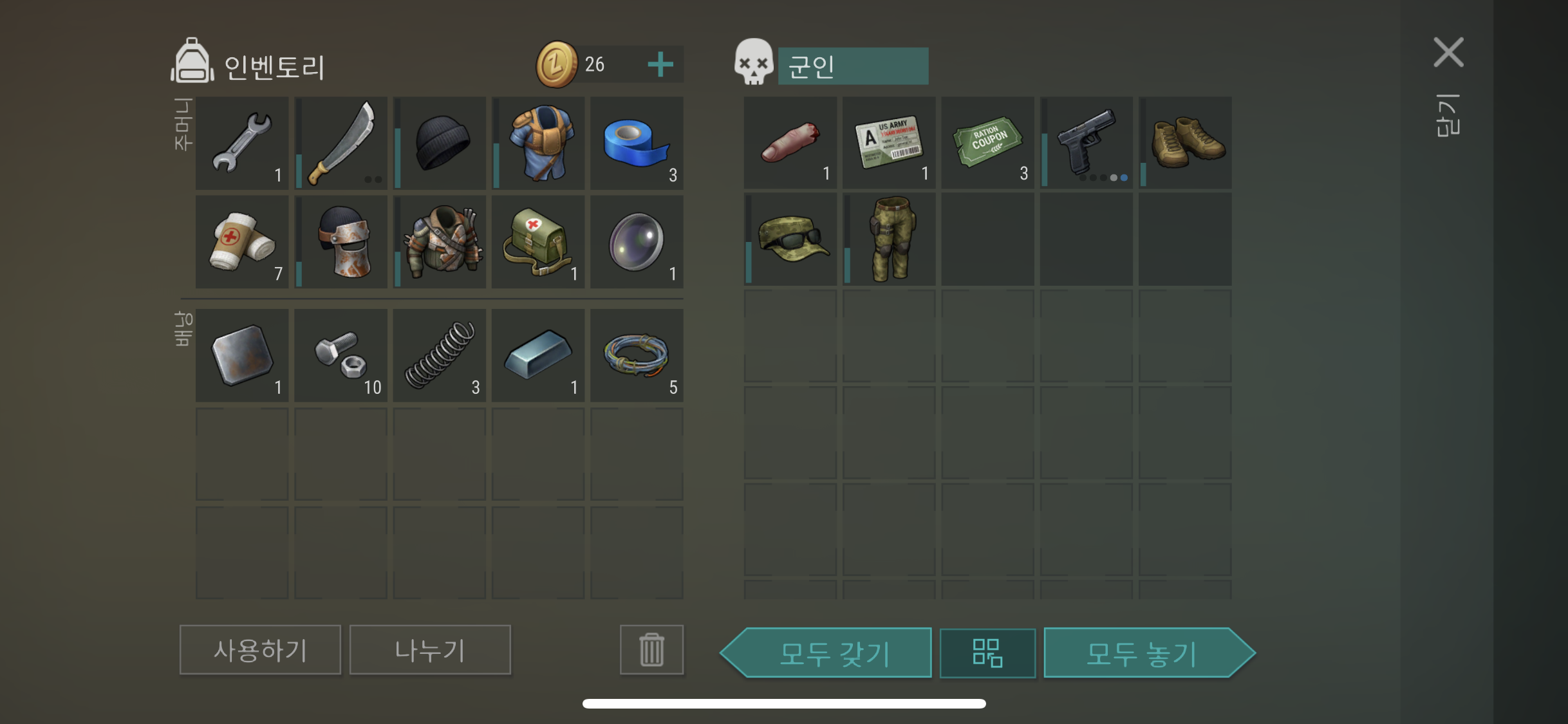 파괴된 호송차 맵에서는 위와 같이 다양한 아이템을 얻을 수 있으니 해당 이벤트맵이 월드맵에 나온다면 반드시 방문해야한다. 군인의 몸에서 나온 저 첫번째 아이템은 총알인 줄 알았는데 손가락이었다. 나중에 알파벙커에서 사용하는 그린쿠폰과 글록등의 아이템이 있다.