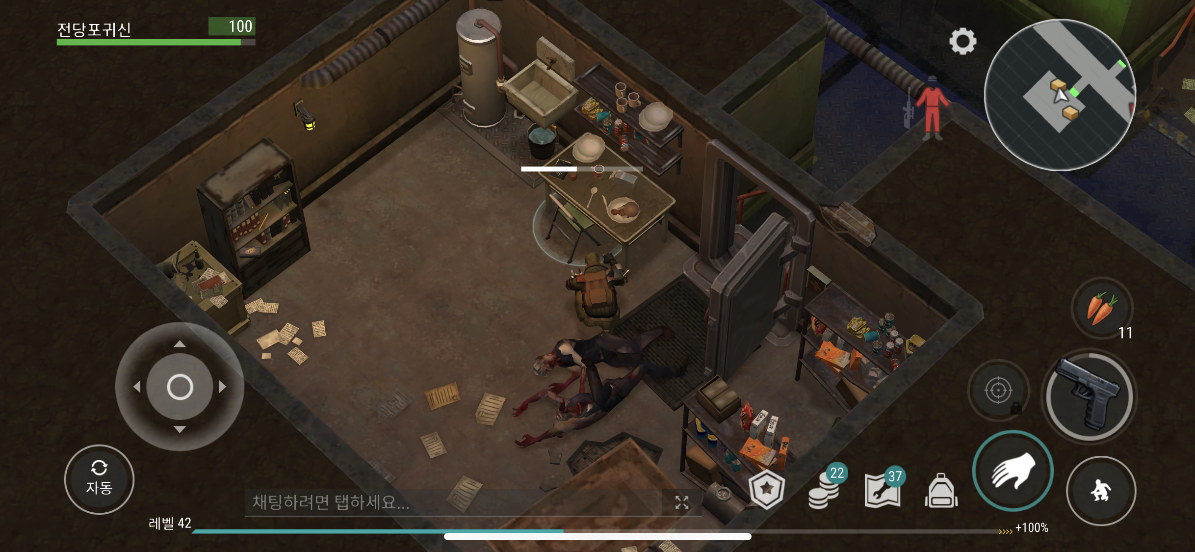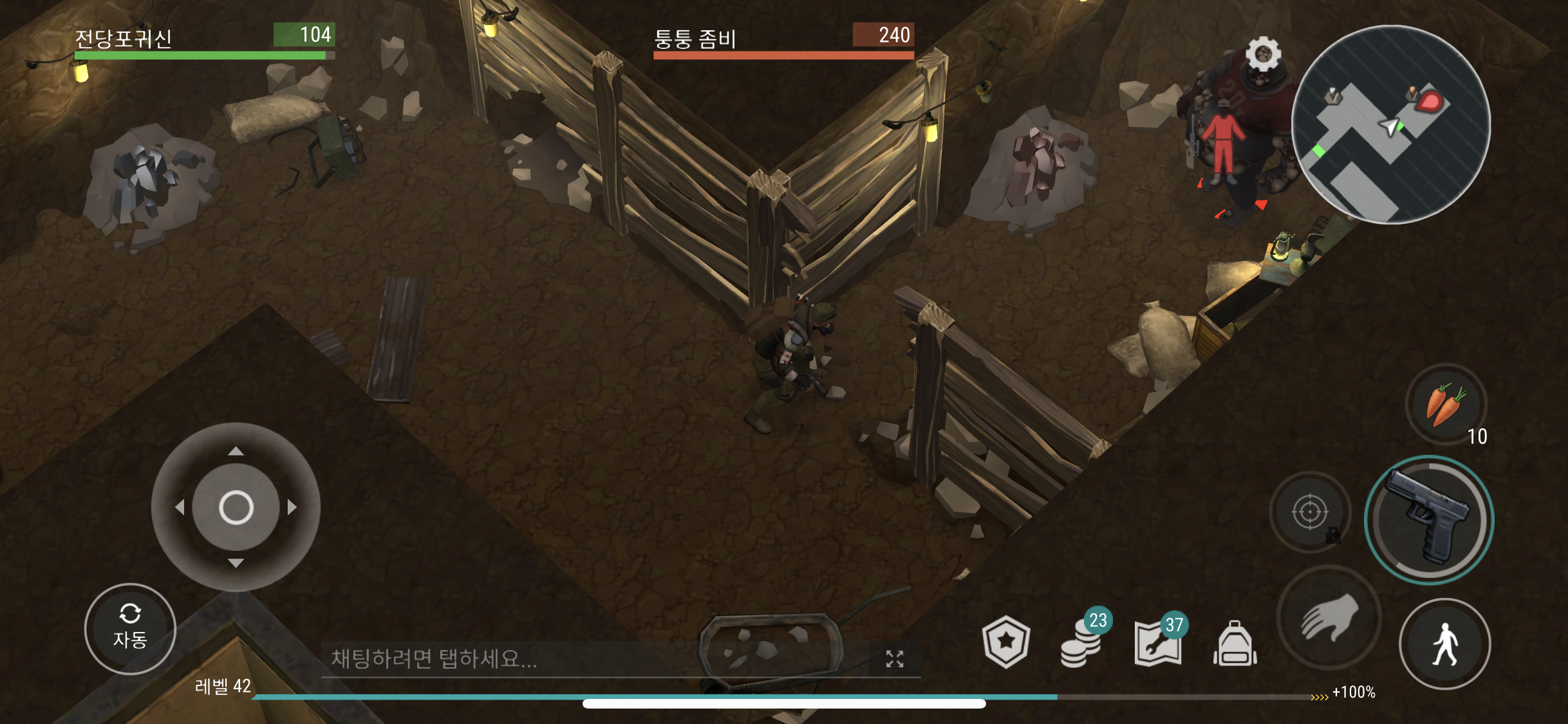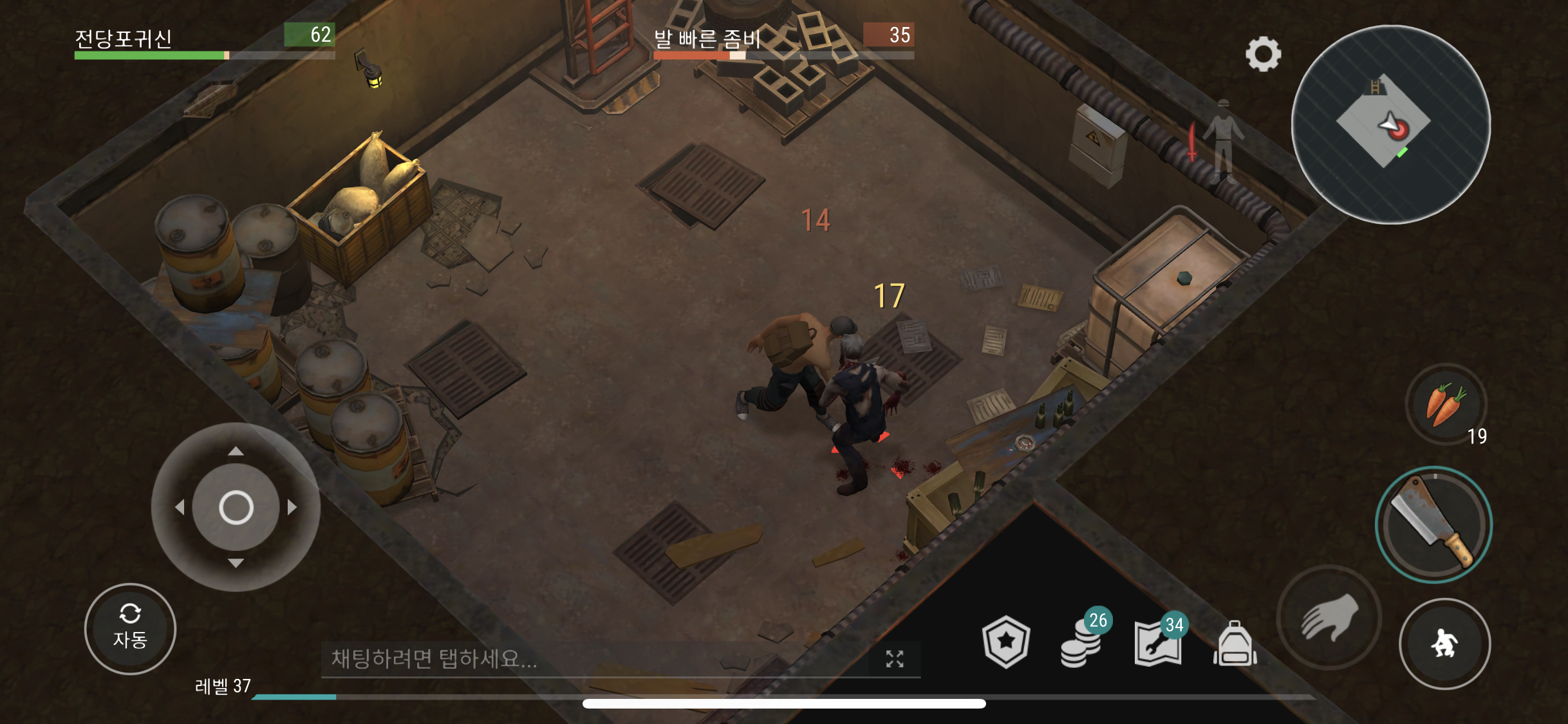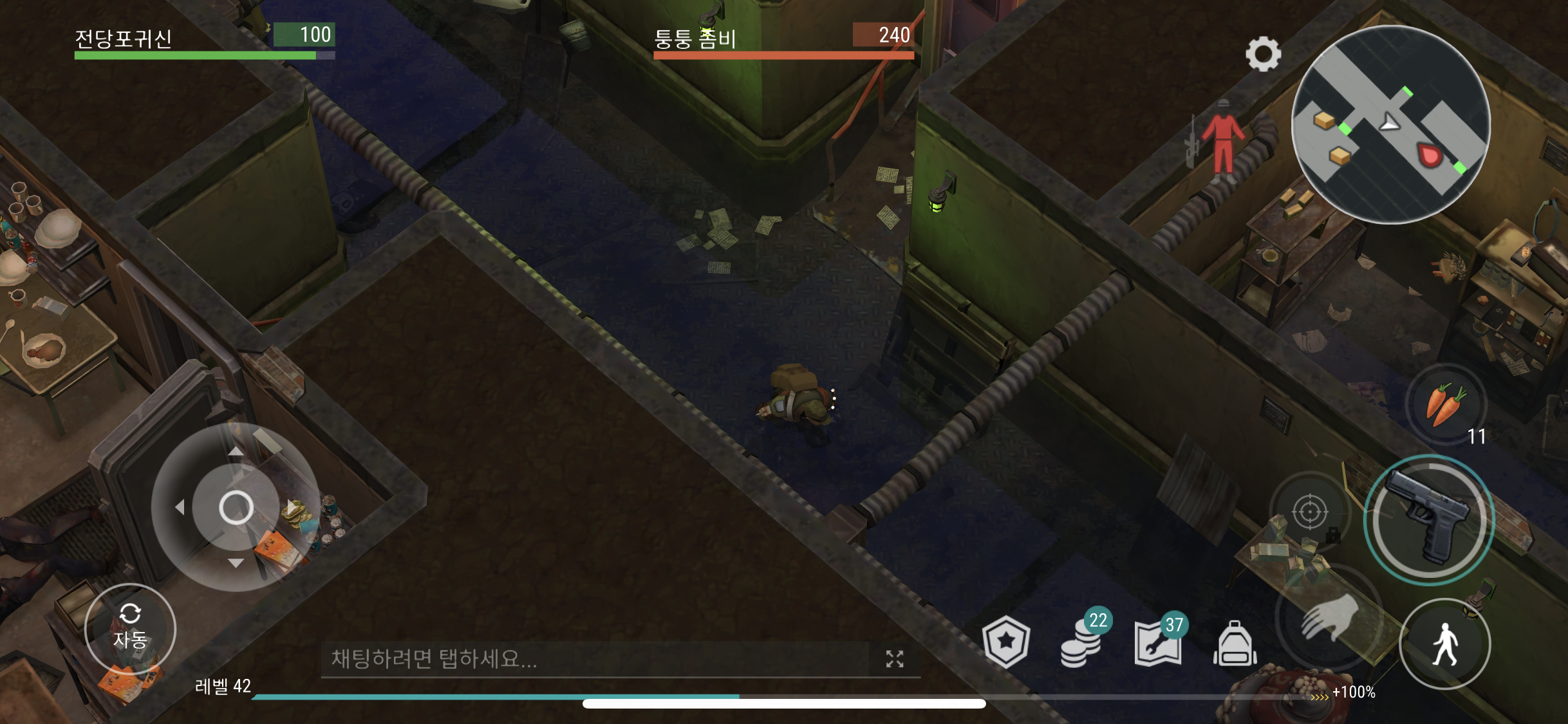 손도끼로 나무로 된 벽을 철거 하게 되면 또 체력 240의 통통 좀비가 또 나타나게 된다.