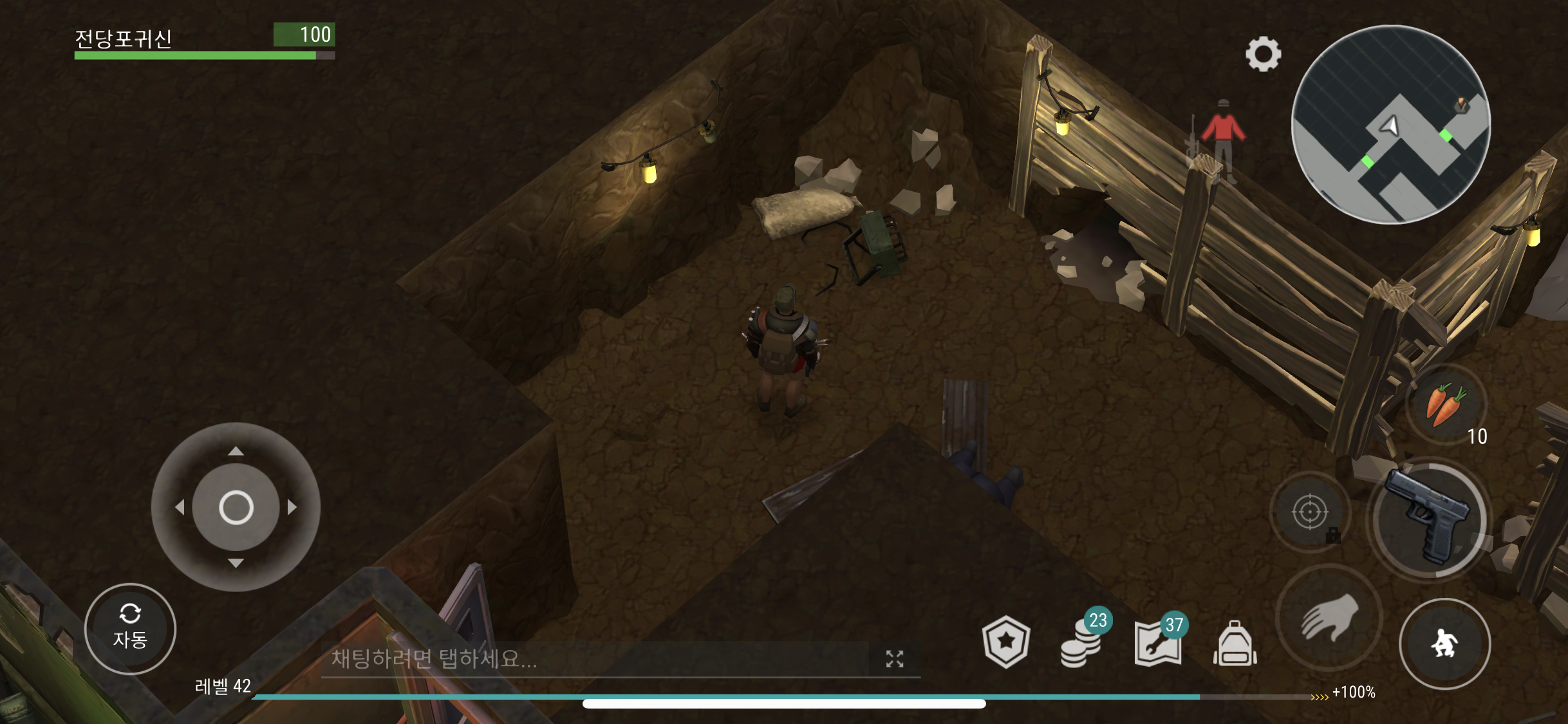 내 홈 기지에서 석회석 절벽 맵으로 이동하여 파밍하다보면 상자가 없고 이렇게 맵 중앙에 지하실로 들어가는 부서진 집 형태가 보이는 경우가 있다. 물론 이 파괴된 집 근처의 상자에서도 아이템들을 파밍 할 수가 있는데 저렇게 지하실로 내려가는 입구를 발견하여 지하실로 내려 갈 수 있다.