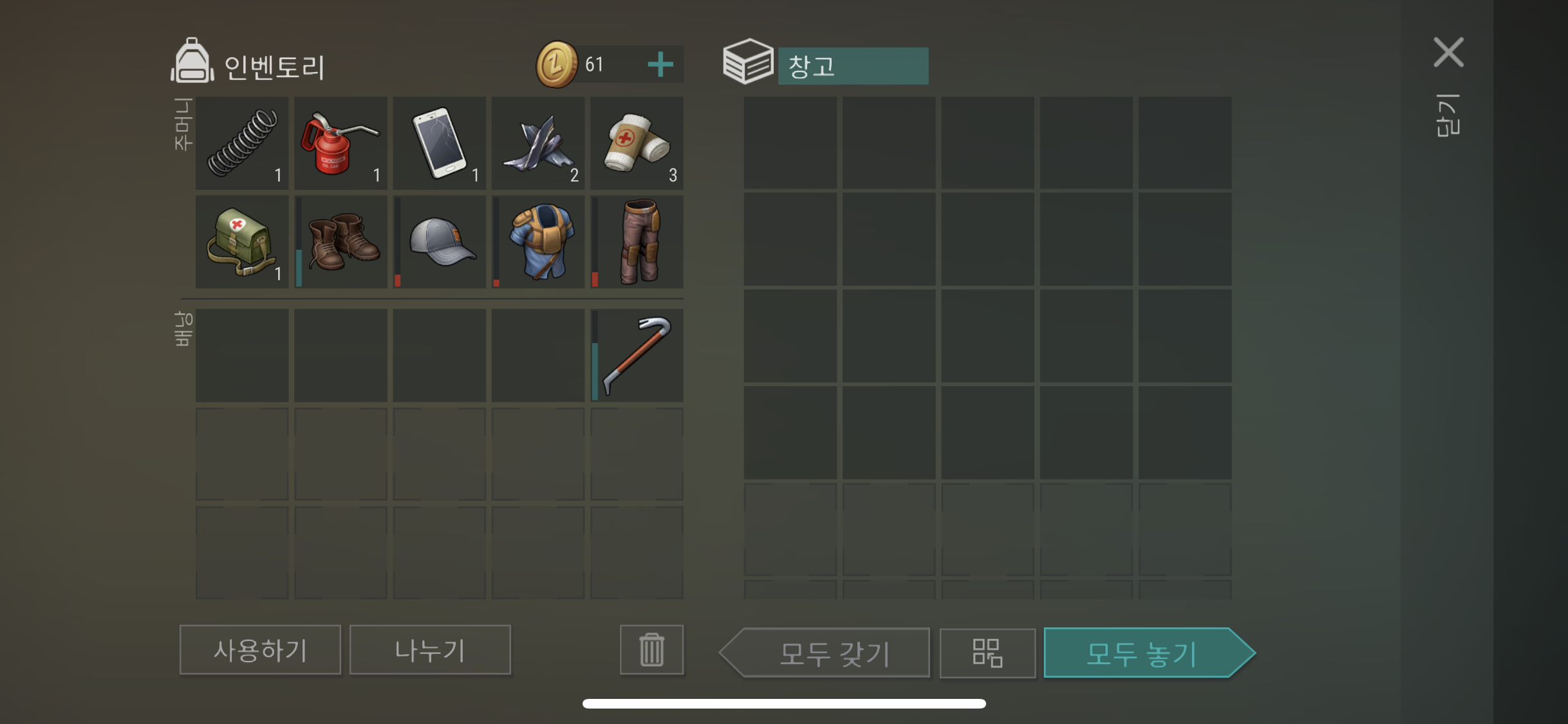 최종적으로 파밍한 아이템들, 아직은 인벤토리 칸이 총 15칸이기 때문에 모든 아이템을 다 가져오진 못하고 우선순위에 따라 아이템을 파밍해 온다. 언제까지 파괴된 호송차 이벤트 맵이 나올지 모르겠지만 필수로 방문해서 좋은 등급의 아이템들을 파밍 해 오자.