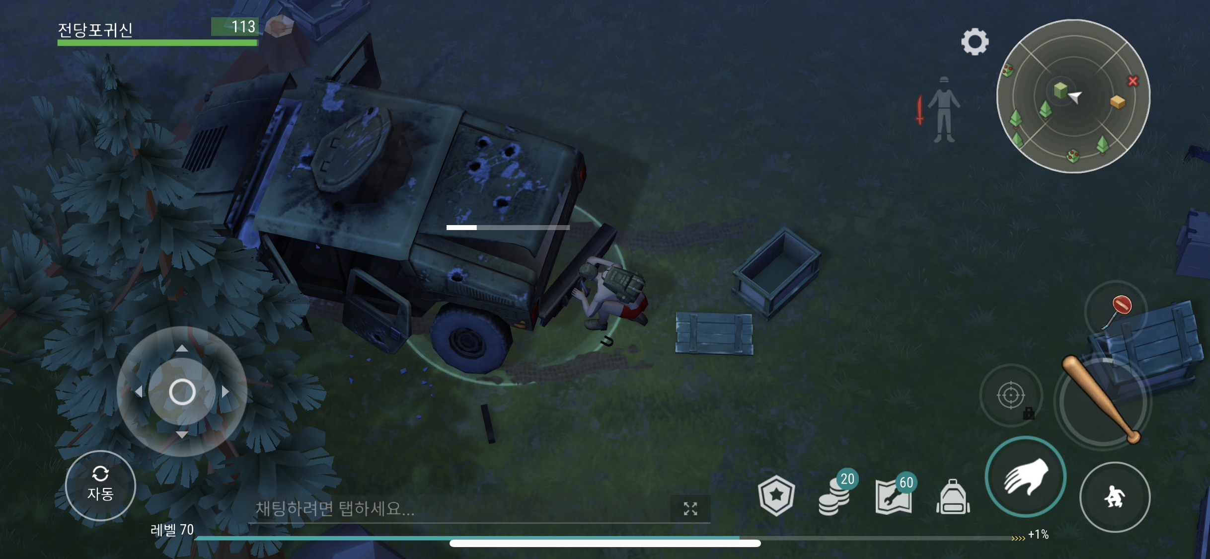 좀비들이 몰려 있기에 조심에서 타겟을 정찰 했다.