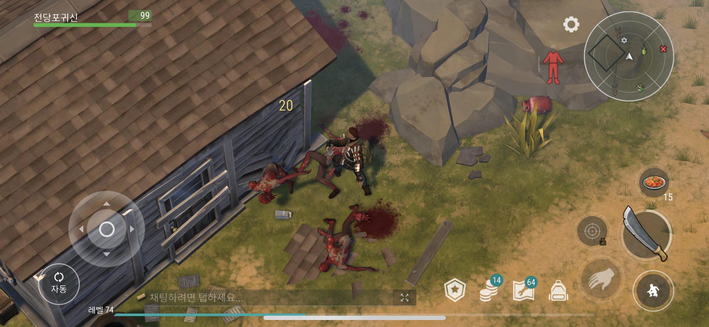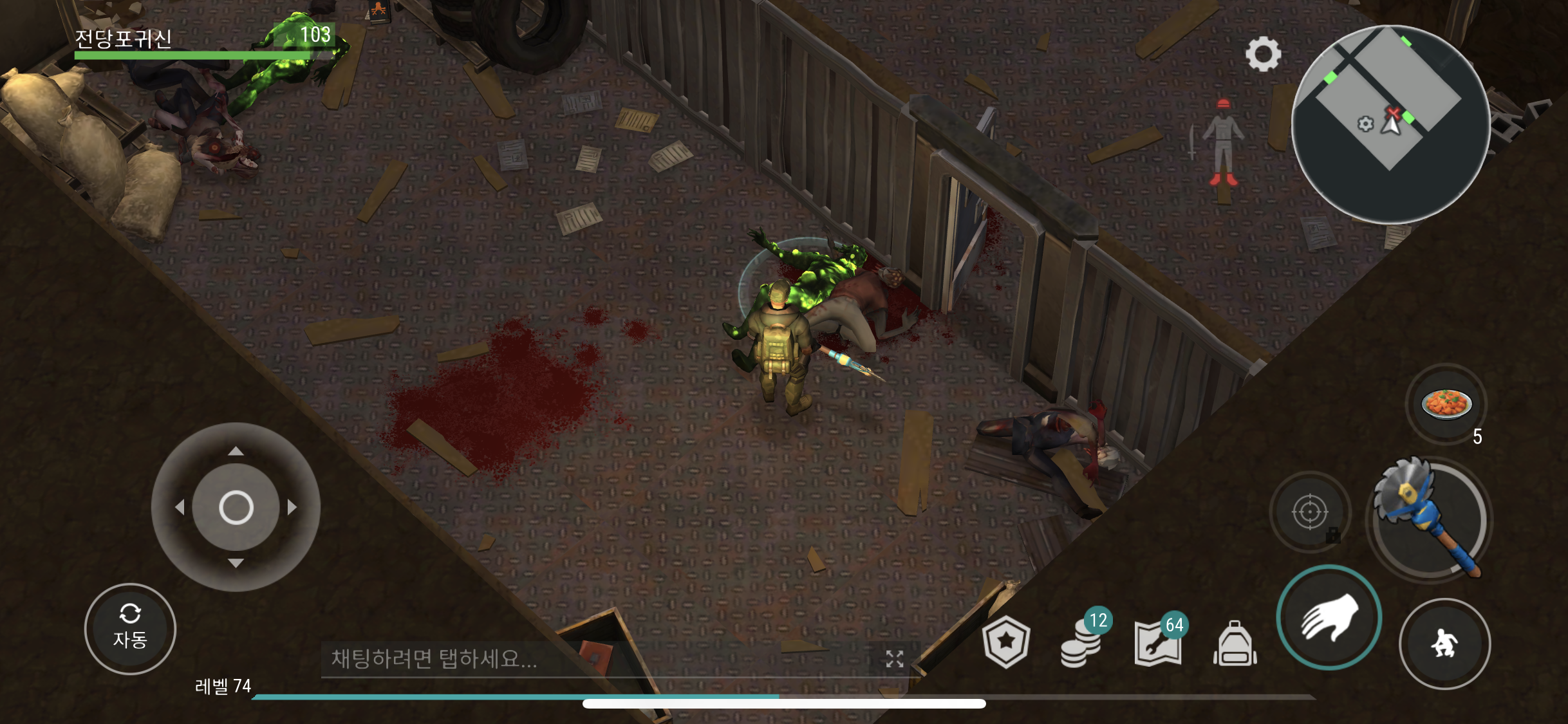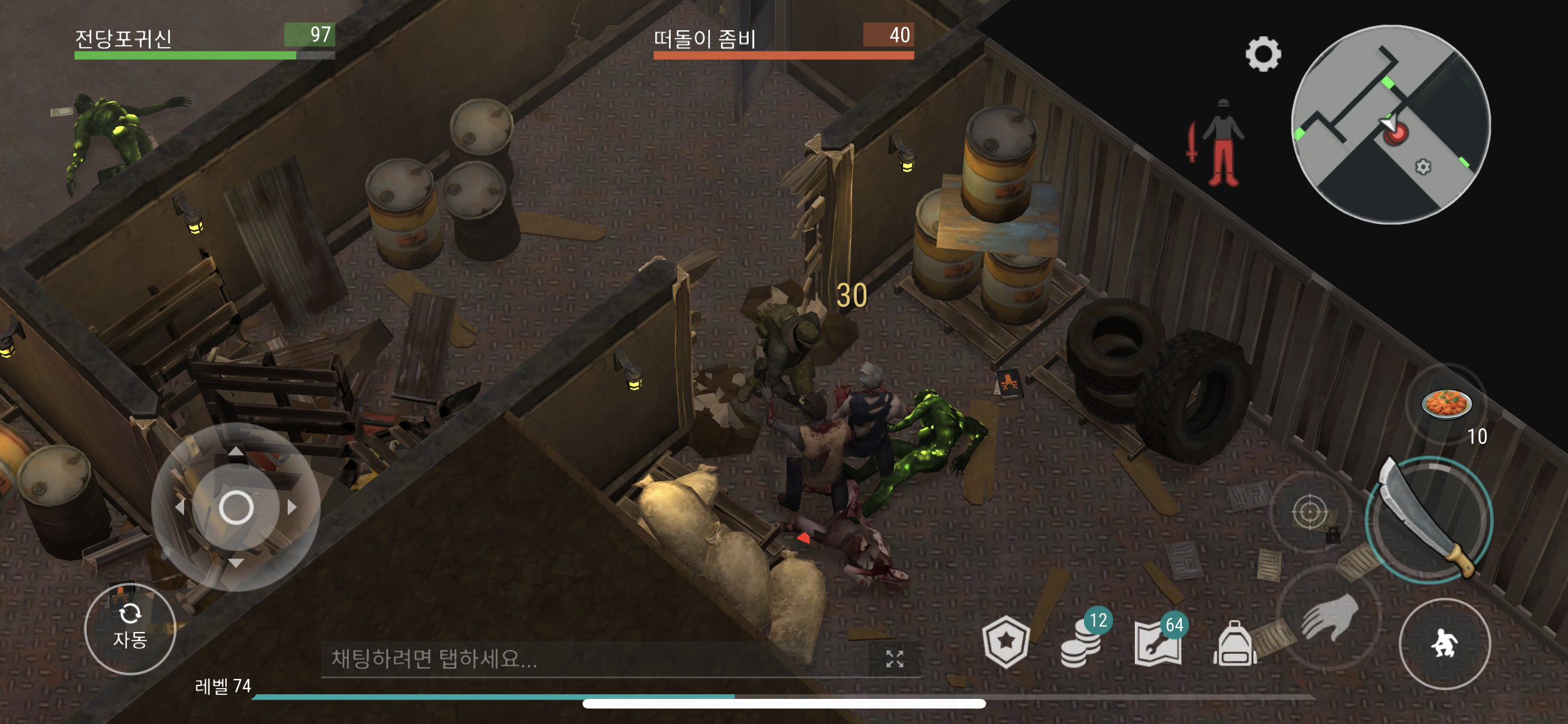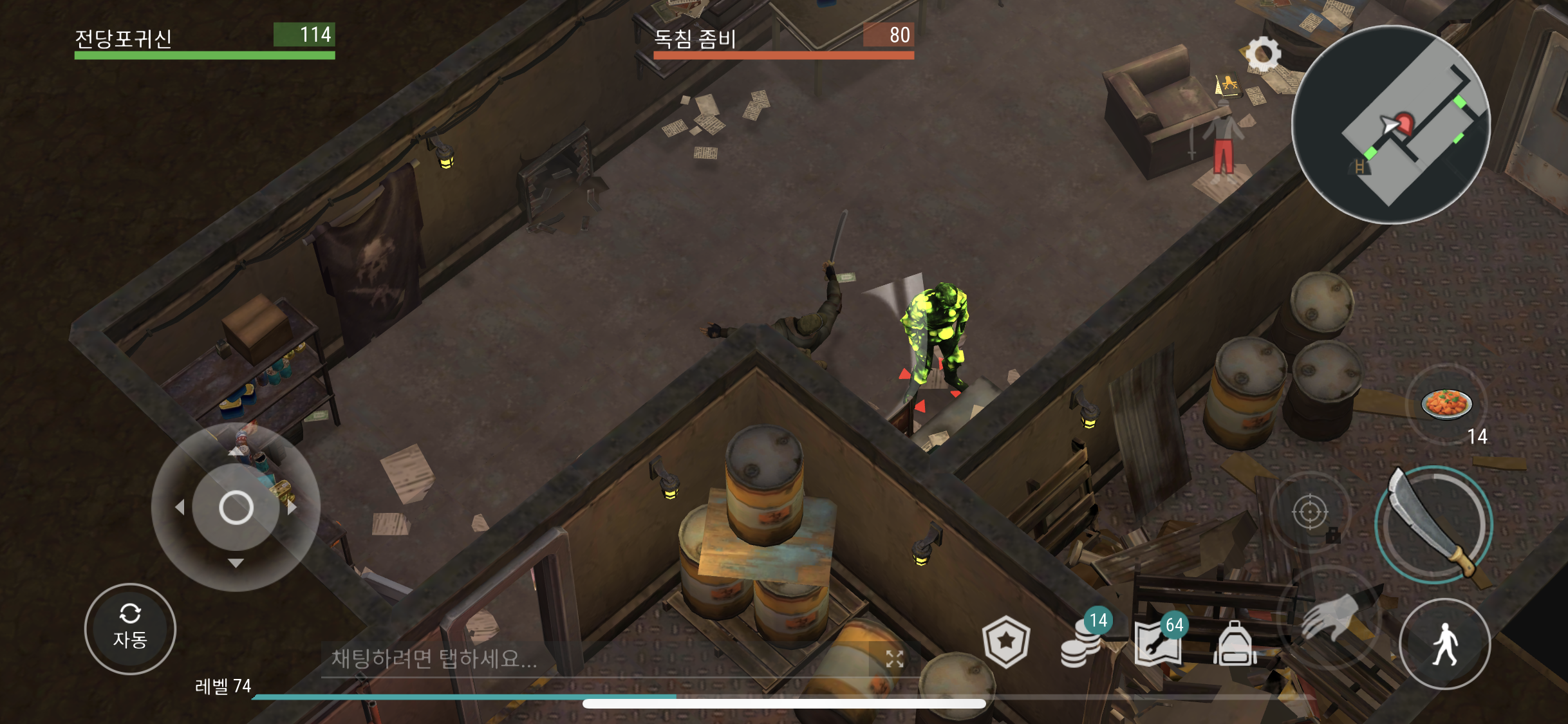 안에 좀비들이 좀 있었던 것 같지만 잘 처리 해 준다. 보통은 여러마리가 한꺼번에 덤비기 때문에 그 부분이 조금 힘들었던 것 같다.