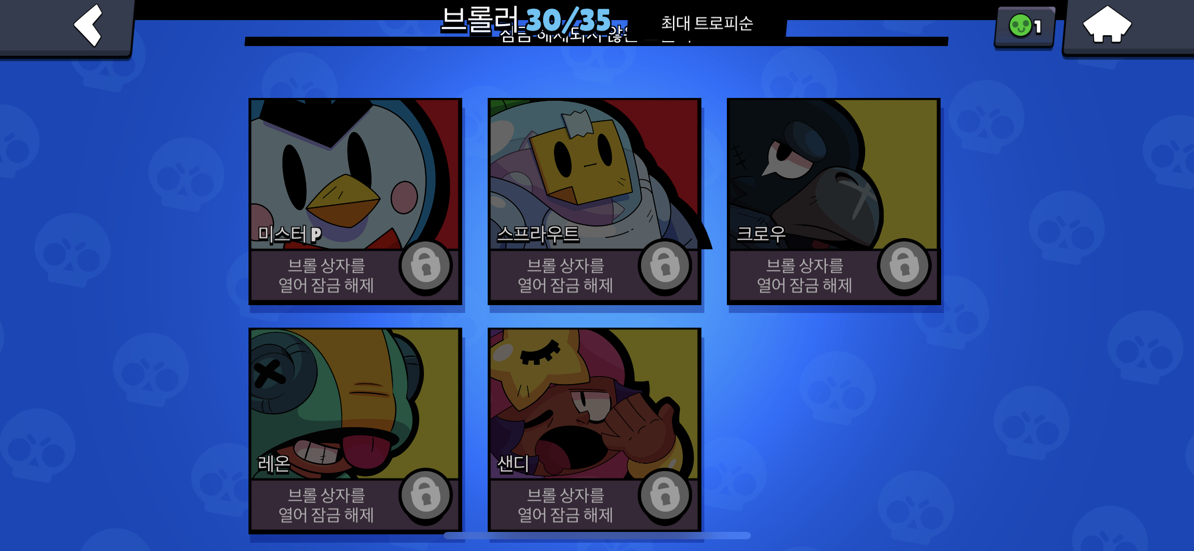 아직 잠금해제 되지 않은 브롤러는 총 5개.