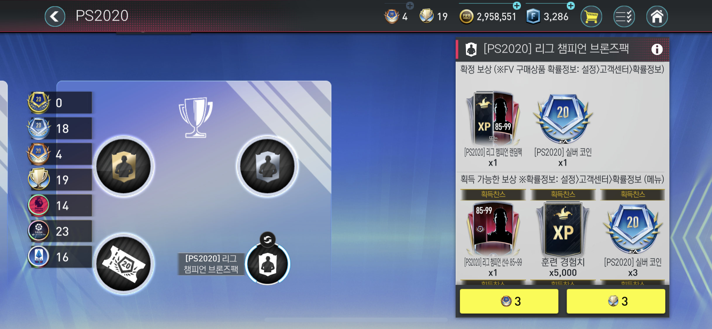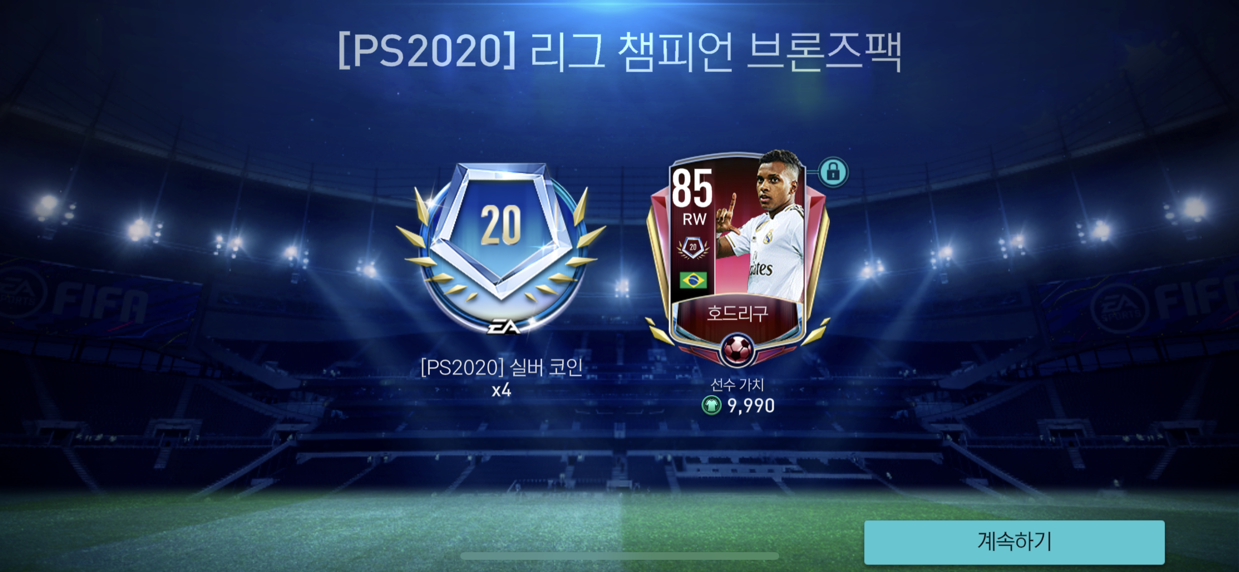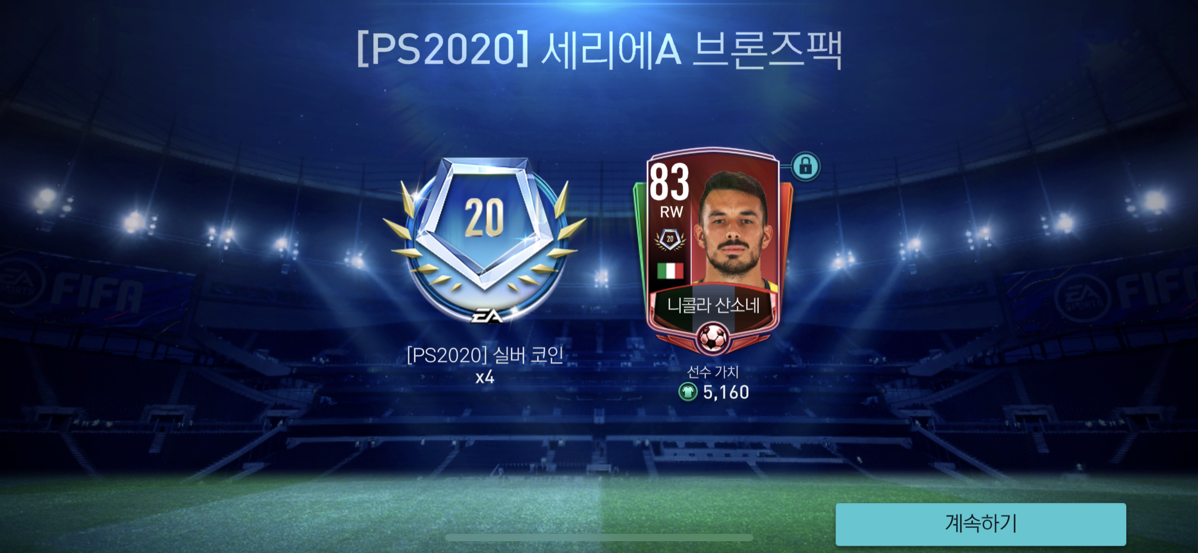 피파모바일 PS2020 이벤트에서 어느정도 코인(?)들이 쌓여 선수 뽑기를 진행 해 봤다.
