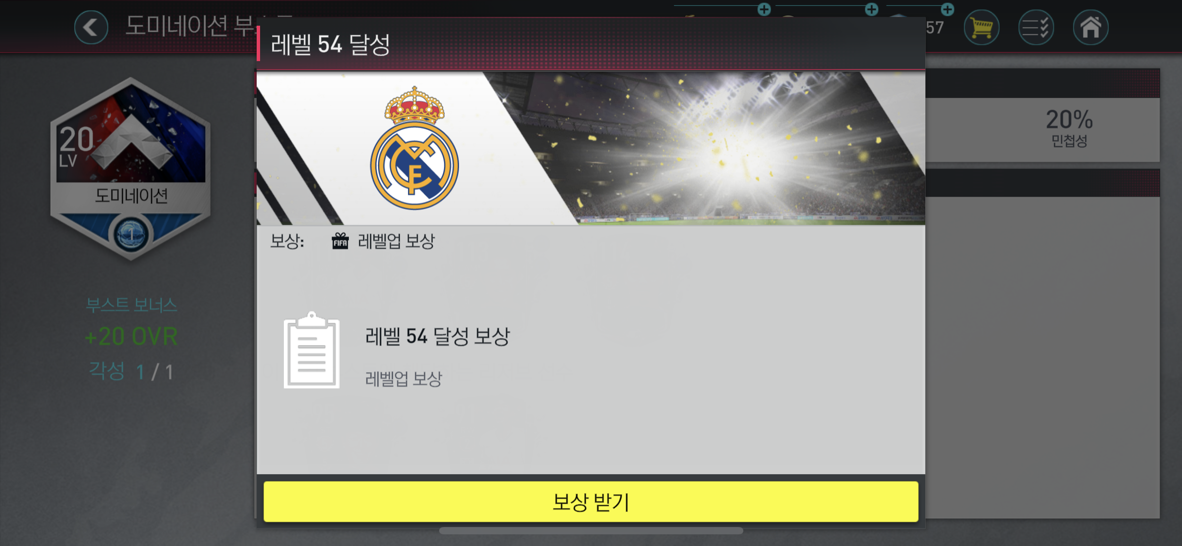 도미네이션 선수들을 활용한 포메이션과 선수구성으로 사용 중 이었는데, 최근 각종 이벤트들로 fv를 많이 얻을 수 있었기에 도미네이션 토큰을 얻기 쉬웠다. 이렇게 지속적으로 얻은 토큰을 도미네이션 스킬 부스트로 교환 후 계속 업그레이드 한 결과 도미네이션 스킬부스트 만렙인 20렙에 도달하게 되었다.