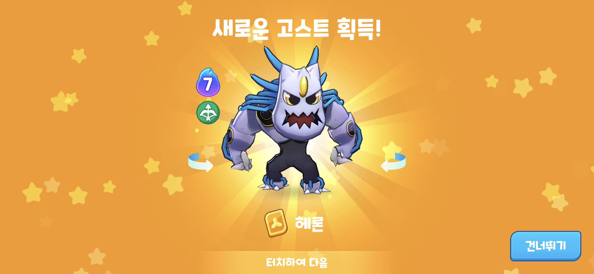 또한 각 게임을 진행하여 얻은 캡슐이나 구매하여 얻은 캡슐을 오픈하게 되면 이렇게 신규 고스트 카드를 뽑을 수 있고 업그레이드에 필요한 포인트도 얻을 수 있다.