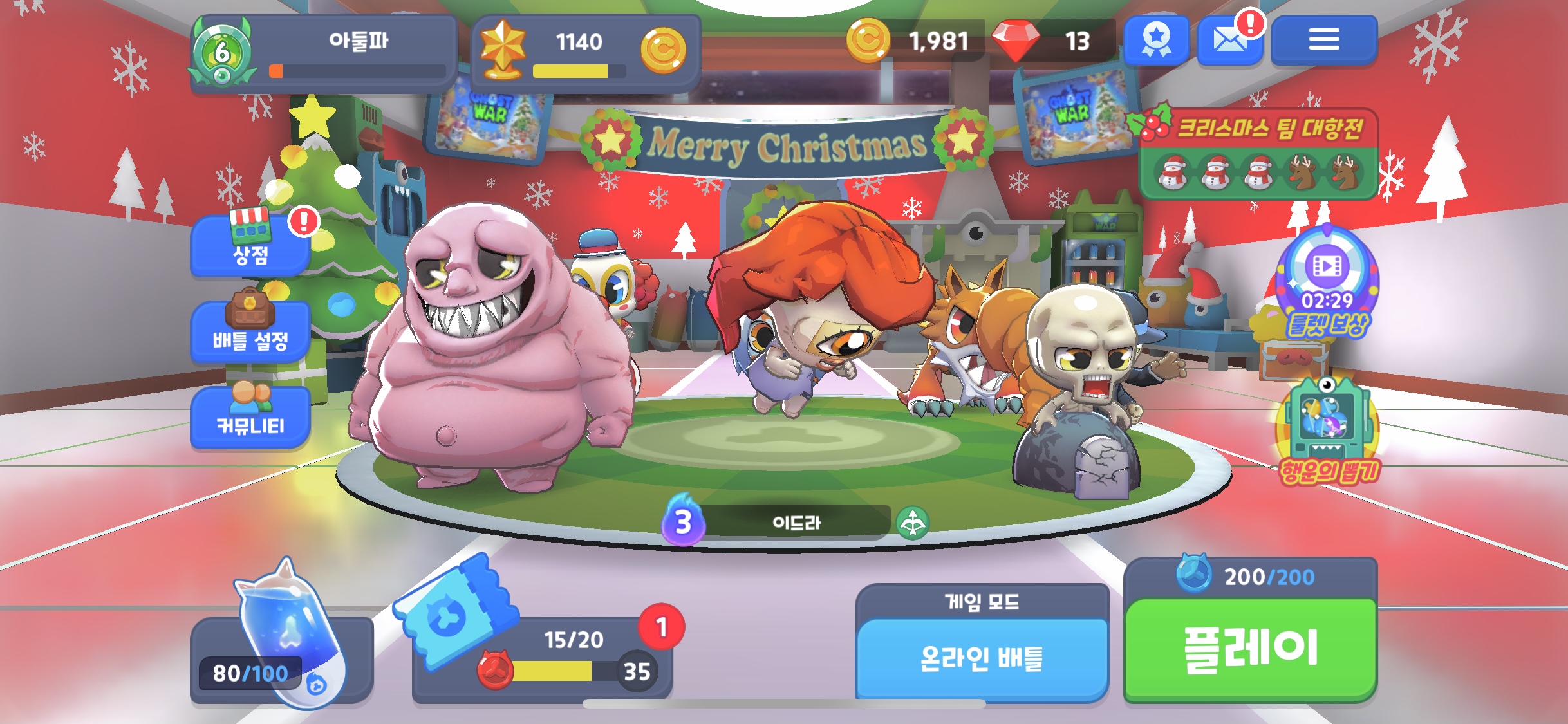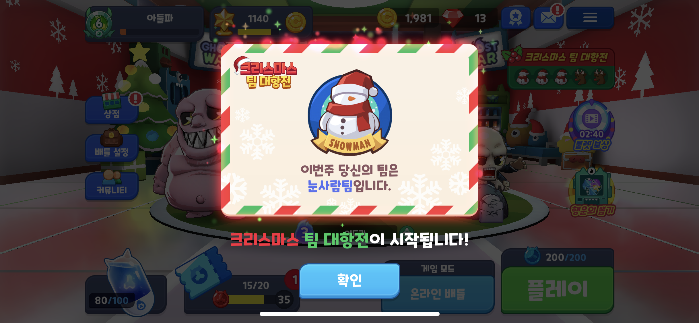 업데이트 후 첫 로그인을 하게 되면 이렇게 크리스마스 팀 대항전에 대한 초대장을 받는다.