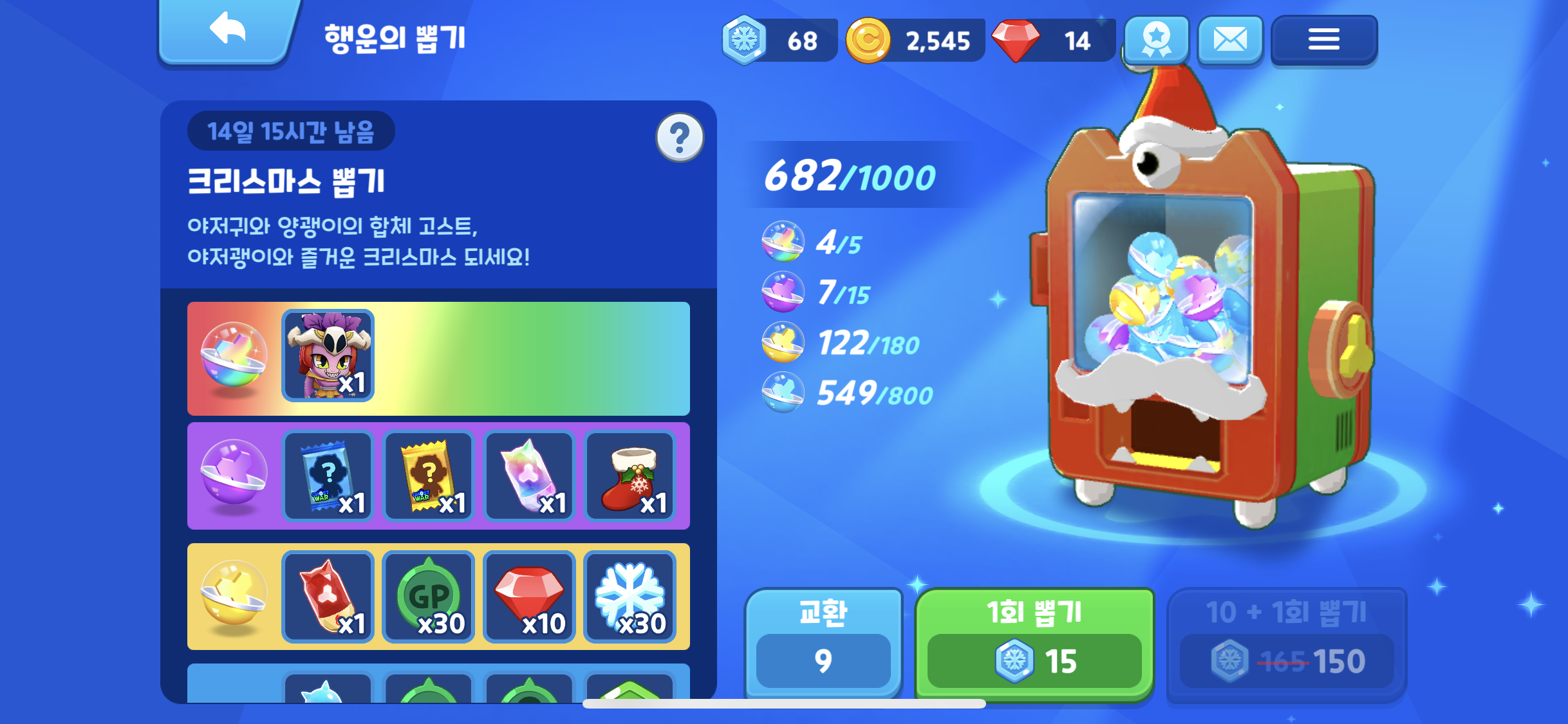 - 프리미엄 뽑기 2탄과 크리스마스 뽑기가 추가됩니다!