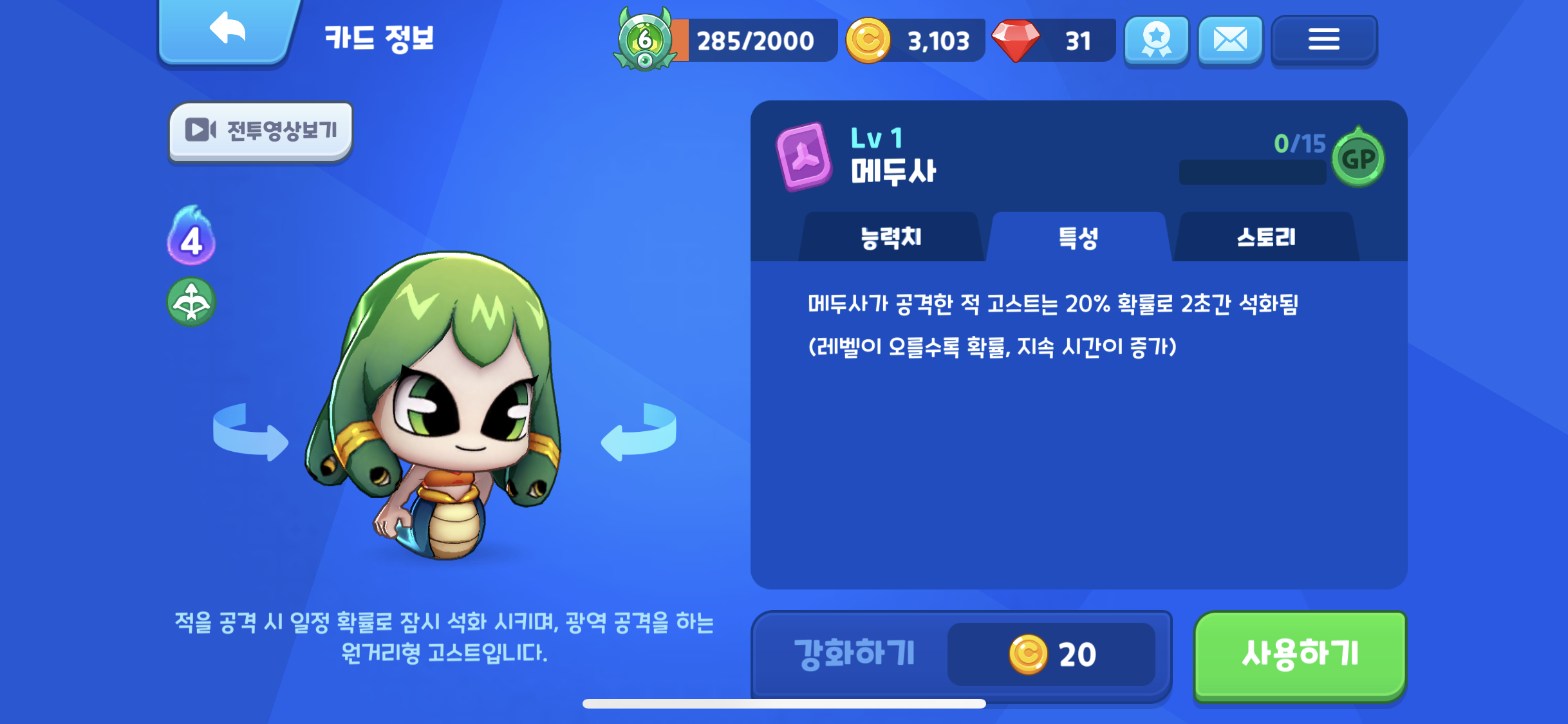메두사는 어느 정도 레벨업이 된다면 바로 덱에 포함시켜 사용하려고 한다. 아마 현재 사용중인 이드라 하고 교환해서 사용 할 것 같다.