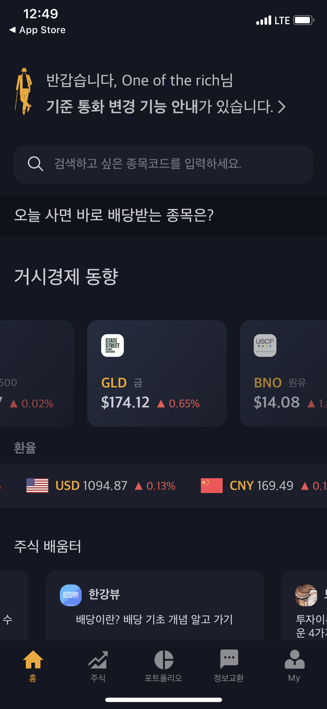 보유하고 있는 미국 주식이 1년에 4번 배당을 주기에 어떻게 관리하면 좋을까 하다가 더 리치 라는 어플을 알게 되었고, 개별 종목의 정보만 얻어오다가 보유 종목 관리를 위해서 가입을 하게 되었다.