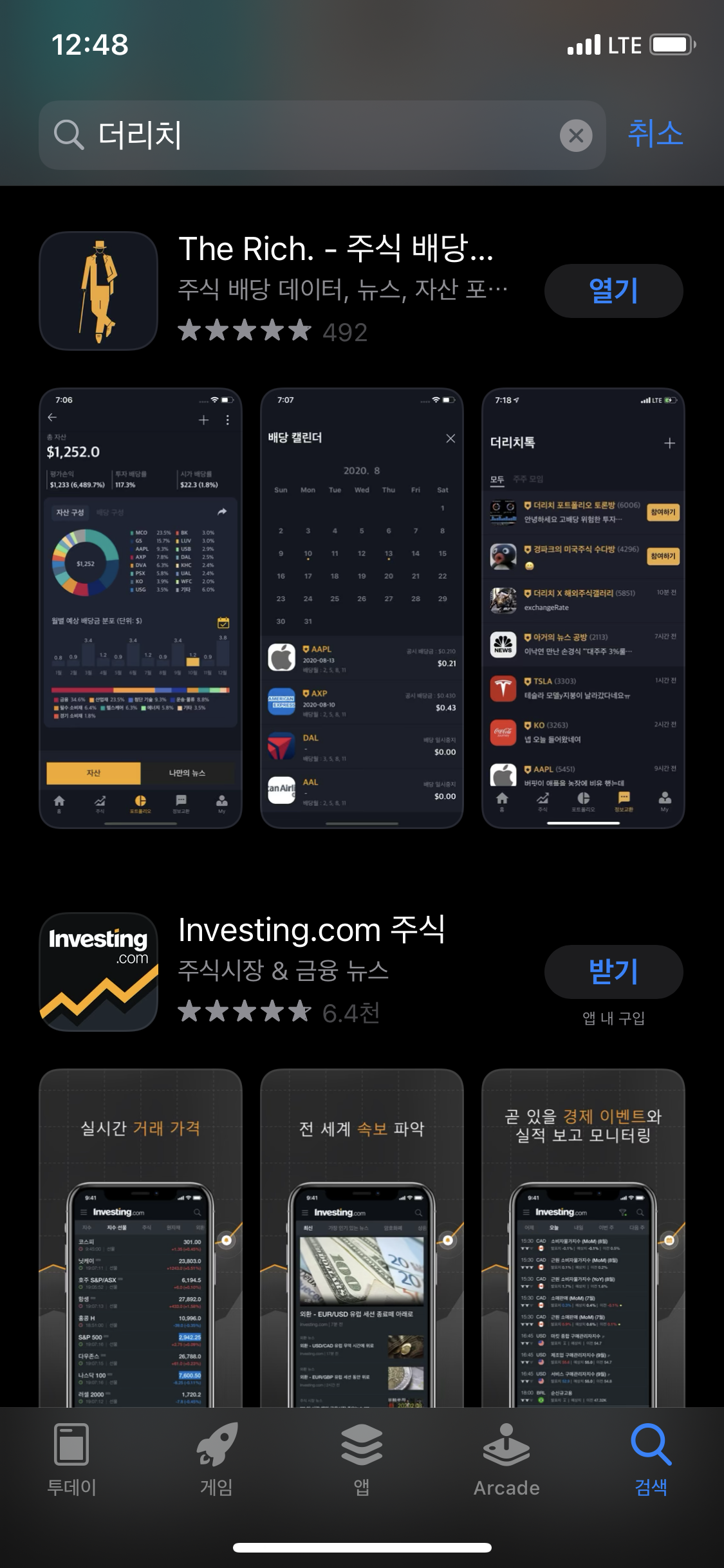 먼저 앱스토어에서 더리치라고 검색을 한 후 어플을 다운 받는다.