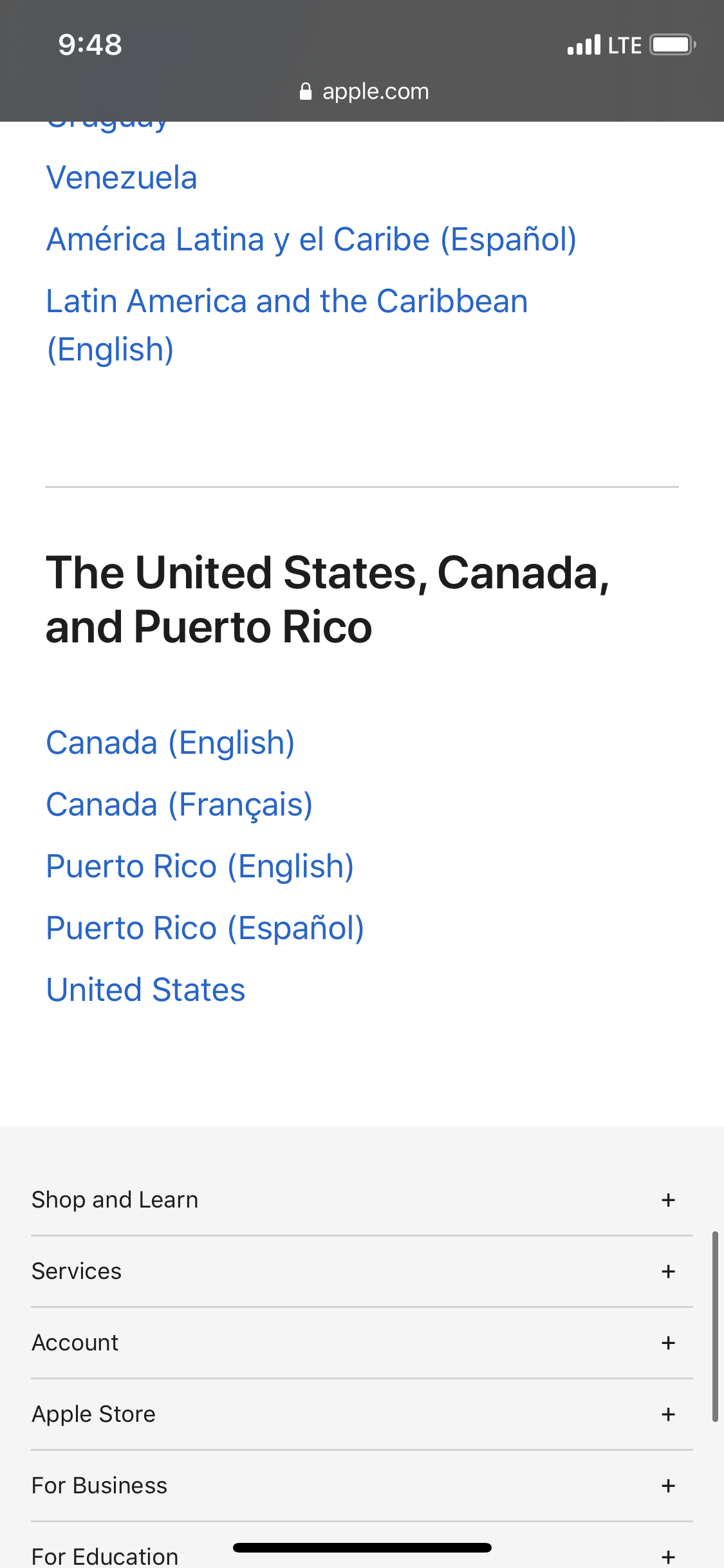 애플 사이트에 접속 하면 이렇게 상단에 국가를 변경 할 수 있는 팝업이 나오는데 거기서 미국을 선택 한다.