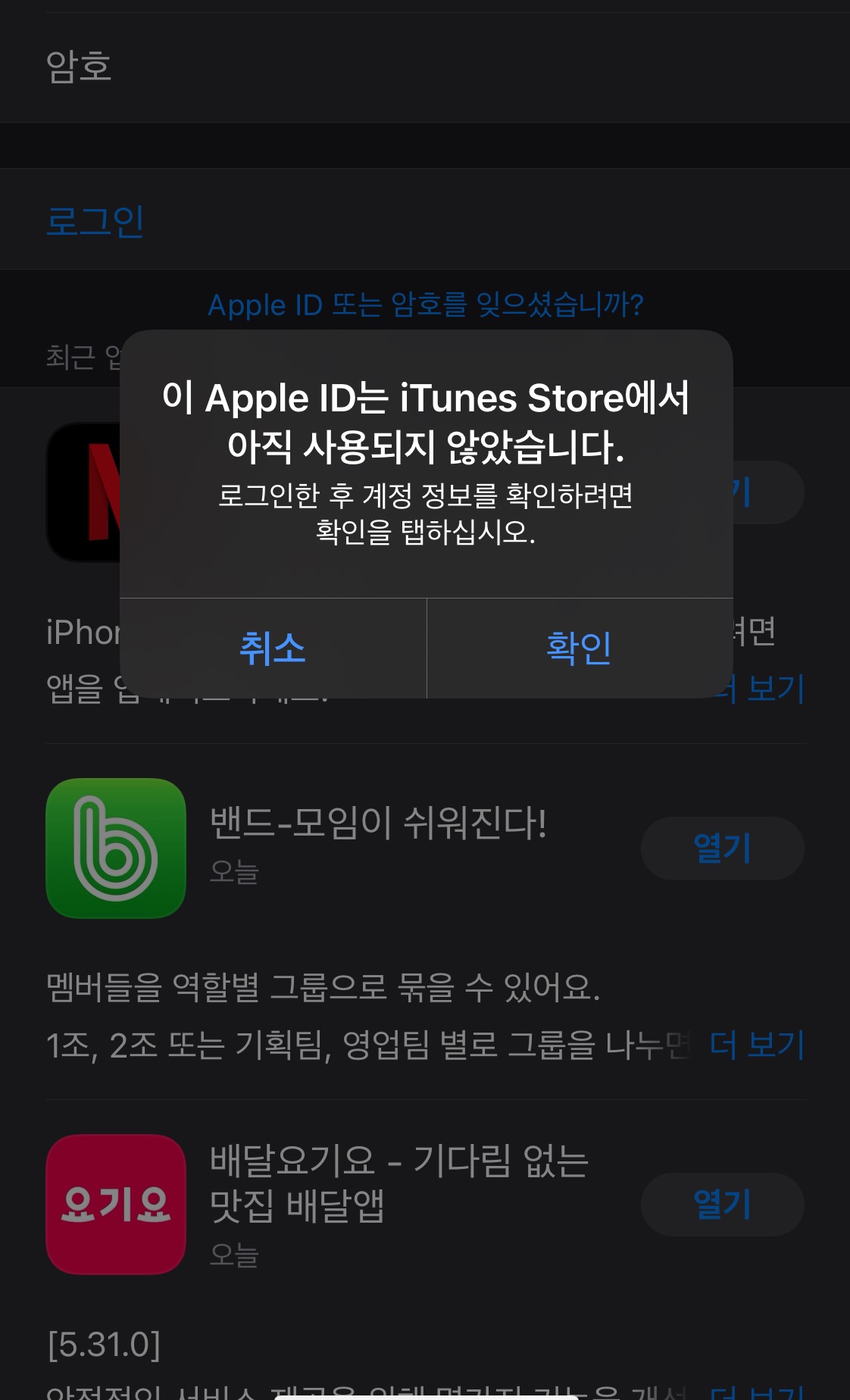 이제 애플 미국계정도 만들었으니 새로 만든 애플 미국계정으로 앱스토어에 로그인 해 봐야겠다.