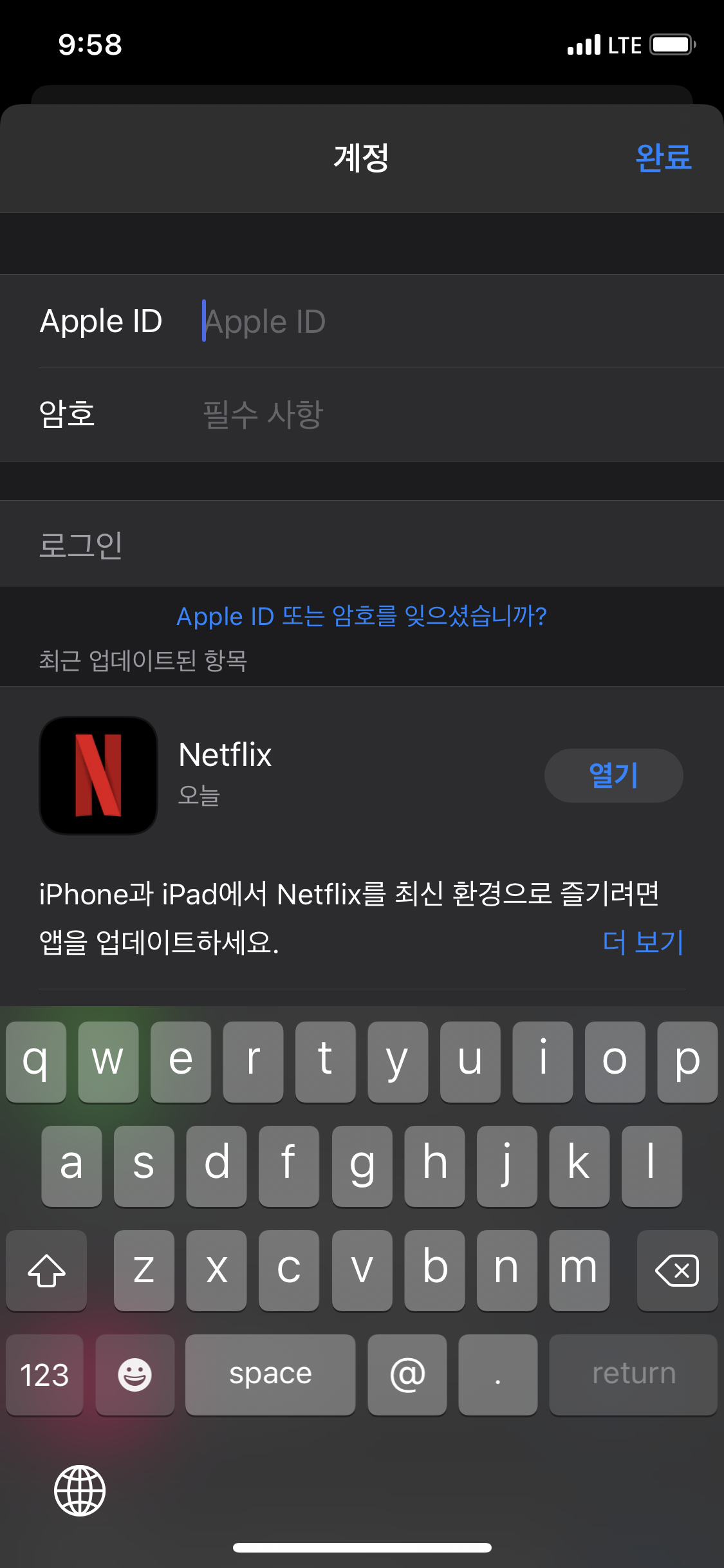 자 그럼 이제 여기에 아까 새로 만든 애플 미국계정으로 로그인 해 주면 된다.
