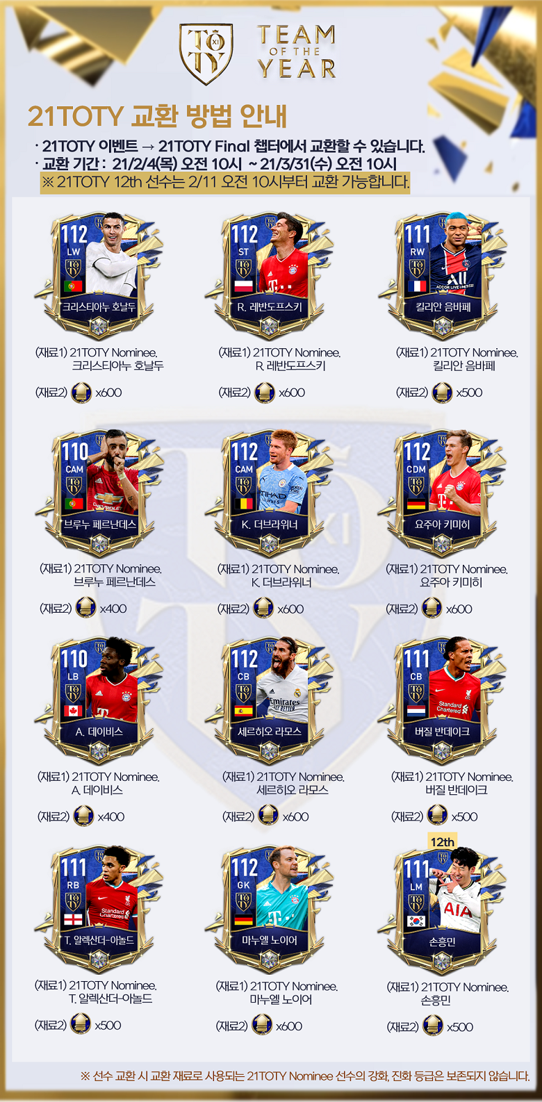 2/4(목)부터 진행되는 21TOTY Final 챕터에 대해 안내 드립니다.