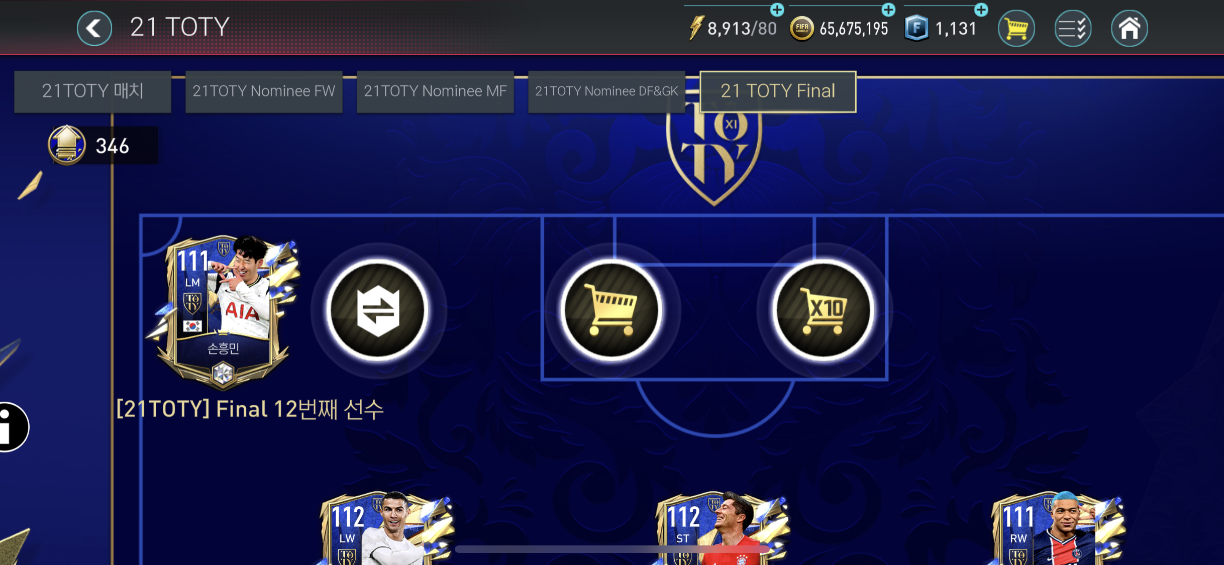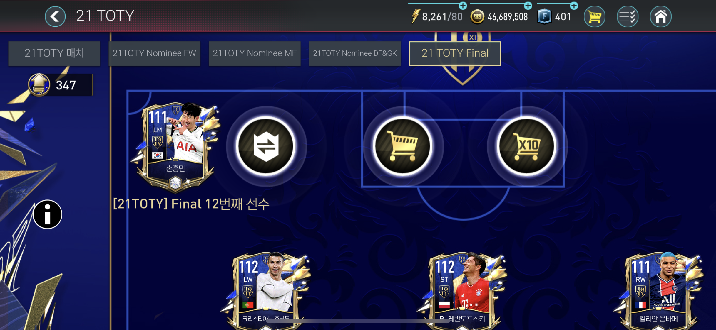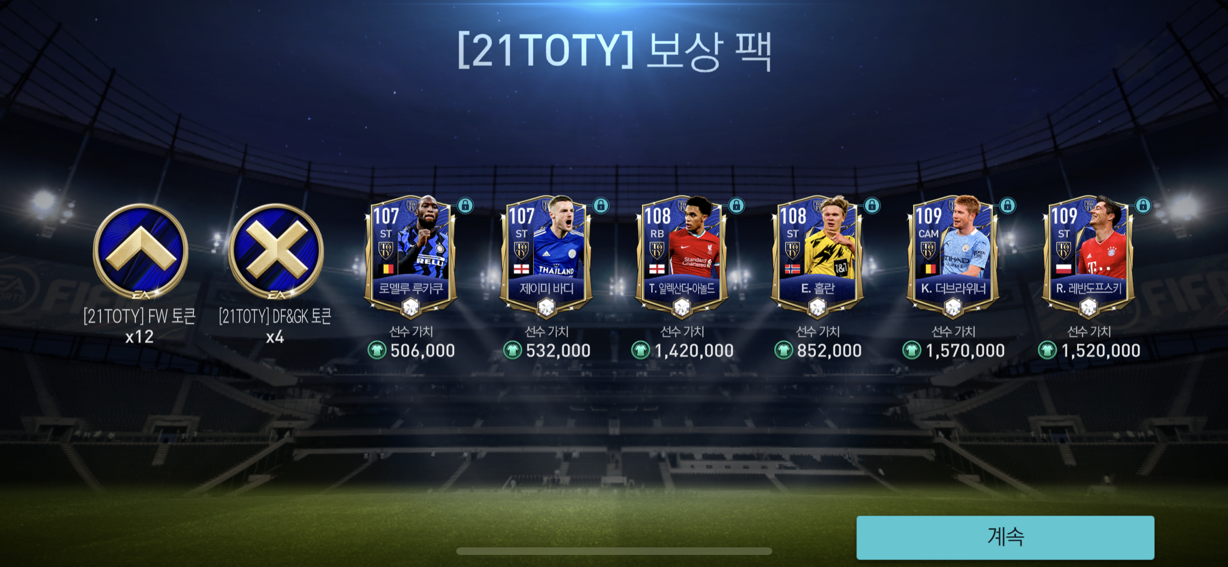 21TOTY Final 토큰 뽑기 결과를 요약 해 보면