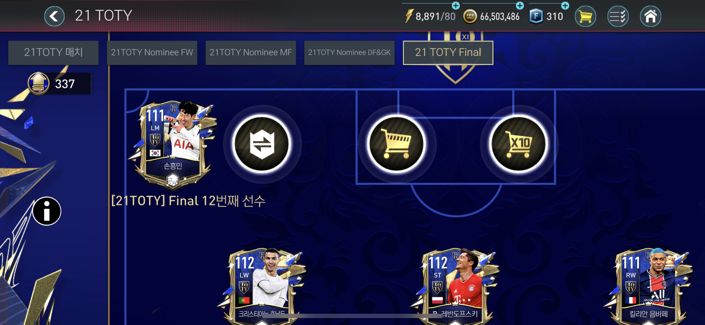 [피파모바일] 피파모바일 공략, 21TOTY Final 랜덤상자 x10 각 2회 씩 4계정 뽑기 결과