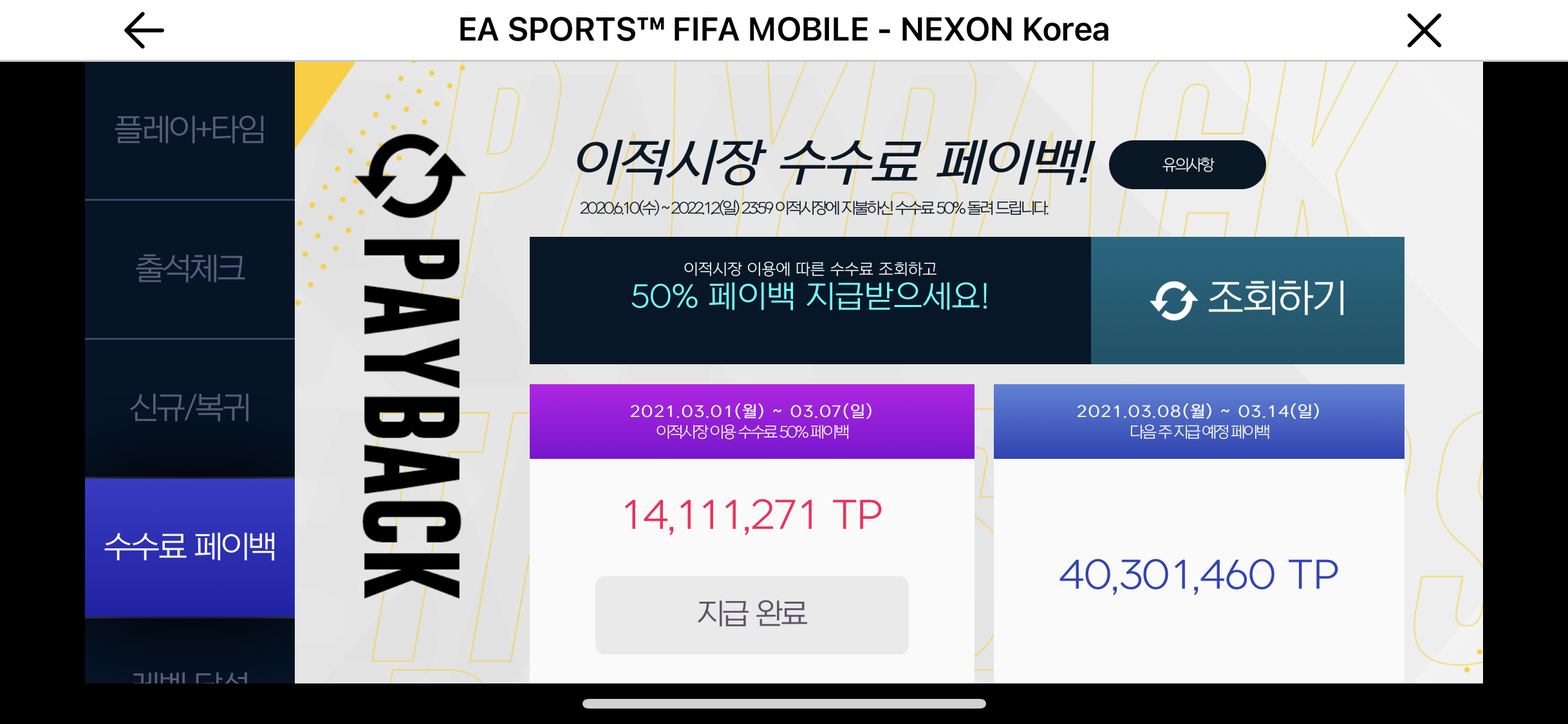 월요일에 받게 되는 페이백이다. TP 옮기기가 쉽지 않은 만큼 매우 귀찮은 작업이다.