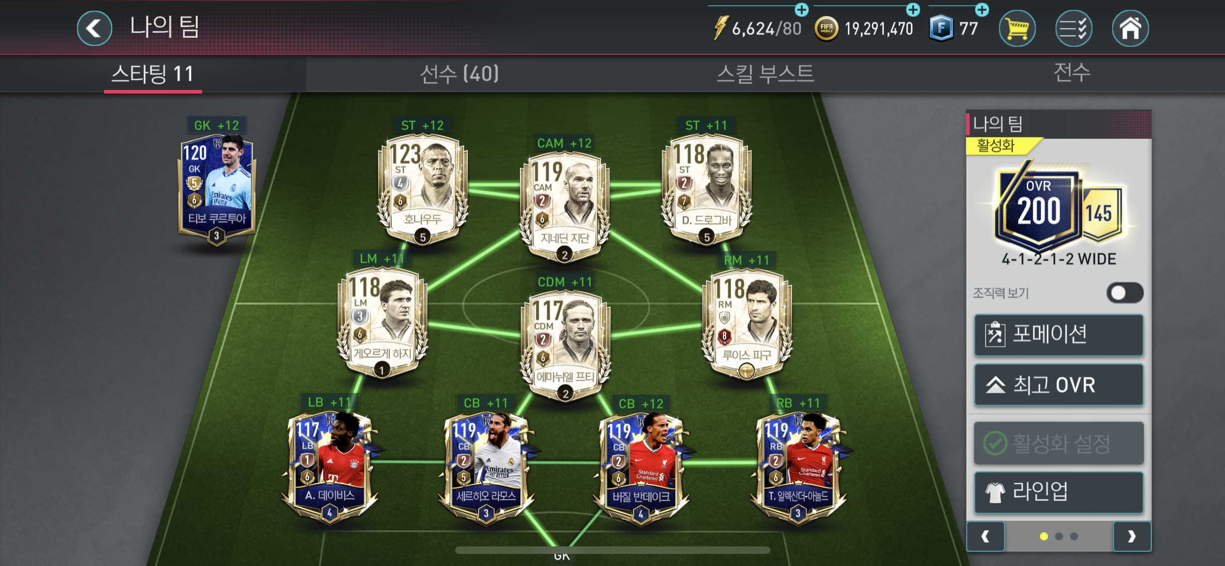 현재 최종적으로 사용중인 덱이다. 수비라인 라모스 반데이크 아놀드 선수는 각 2진화 짜리 선수로 구매 하였고, 데이비스 선수도 곧 진화 된 선수도 교체 예정이다.