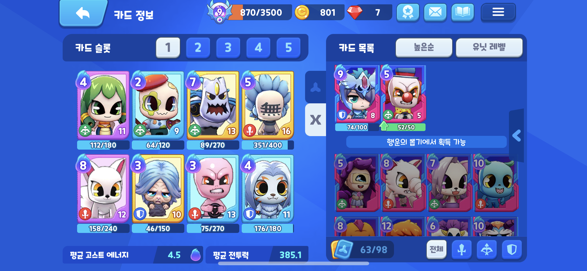 그리고 마지막으로는 요즘 한창 밀고 있는 나의 덱, 랭커들의 덱들을 유심히 지켜본 결과 대부분 랭커들에게 공통적으로 포함 된 고스트들을 추가 해 보았고 그 외에는 나만의 전략을 이용하여 전투한다.
