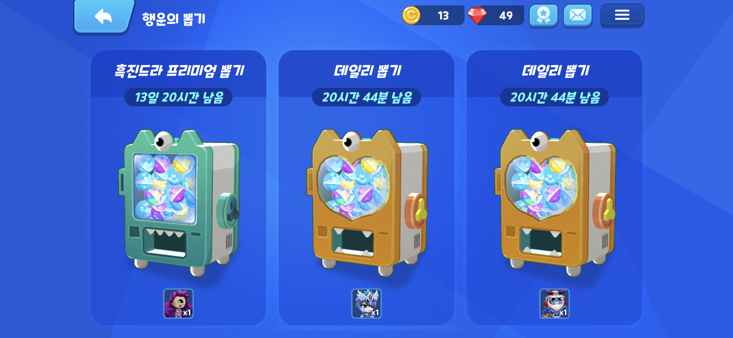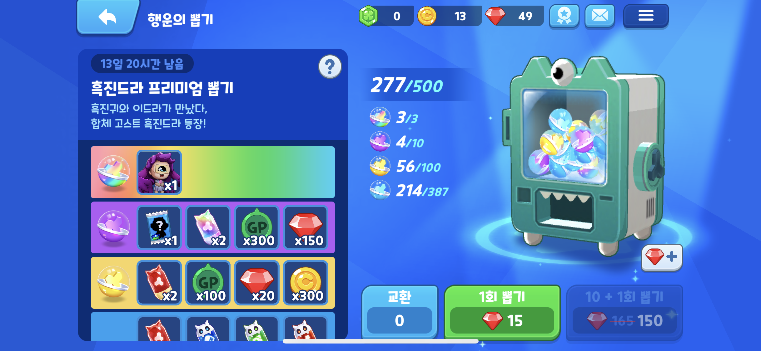 행운의 뽑기에서는 흑진드라 뽑기가 추가 되었다.