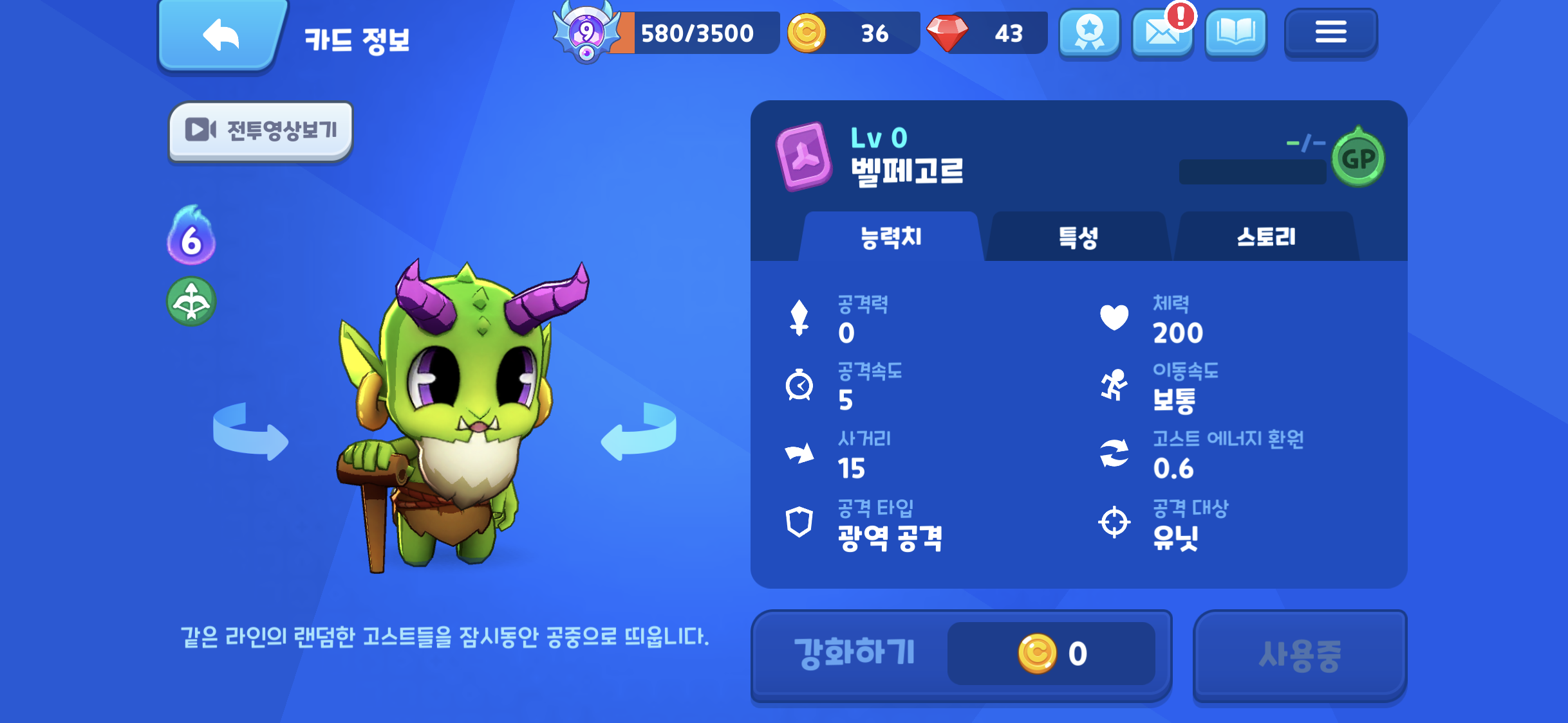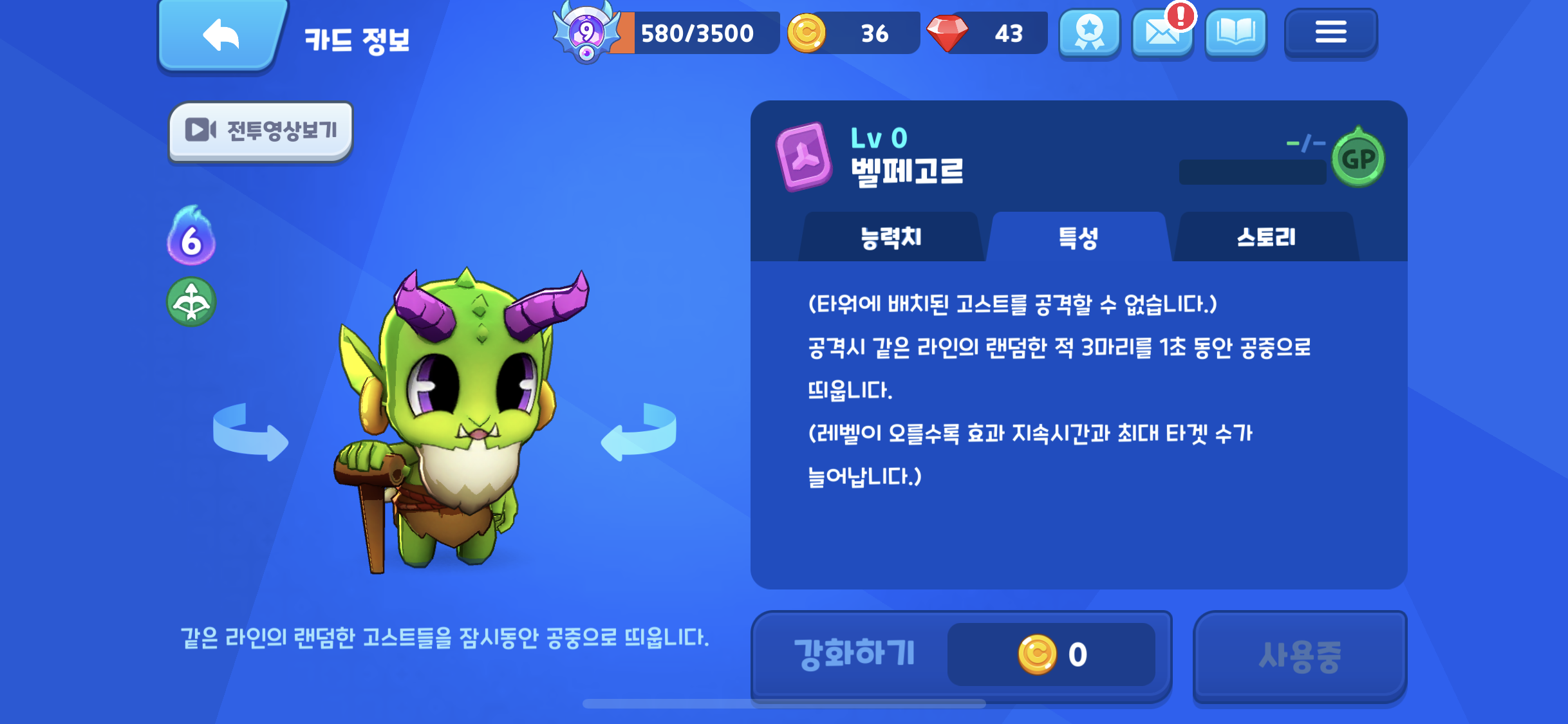 신규 추가 된 고스트 벨페고르, 그런데 공격력이 0이다. 공격능력이 없는 고스트라.. 보니깐 공격 행위를 할때 같은 라인의 상태편 고스트을 공중으로 띄우는 특성을 갖고 있다.