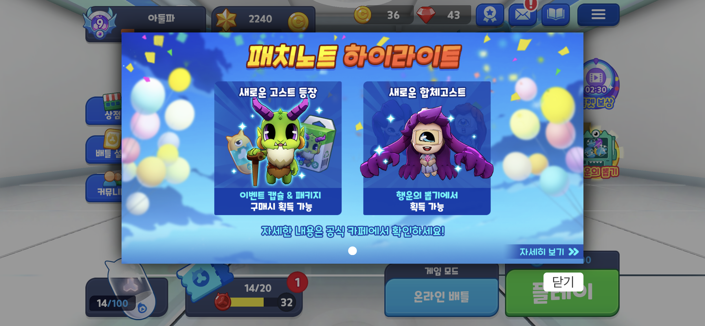 기존에 프리미엄 뽑기를 통해서 가루이안을 획득 하였었는데, 이안이 없어 가루이안을 한번도 사용해 보지 못했는데 드디어 이안을 뽑아서 합체고스트인 가루이안을 사용 해 볼 수 있었다.