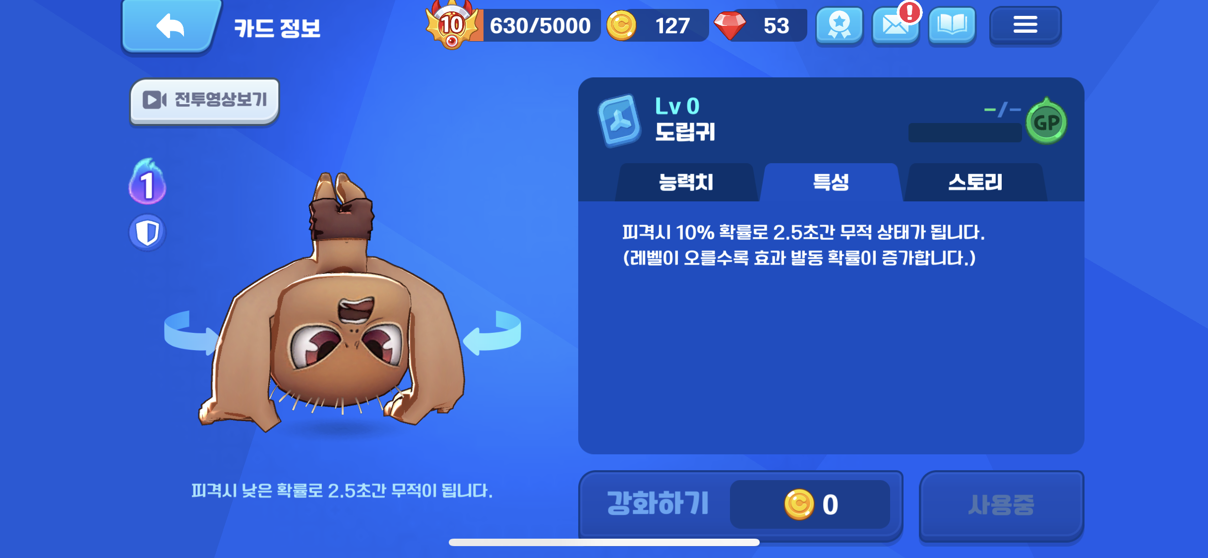 체력이 낮기 때문에 과연 죽기 전에 무적상태가 발동 될지 의문이다. 죽기 전에 한대라도 더 때리고 죽는게 나을 듯...