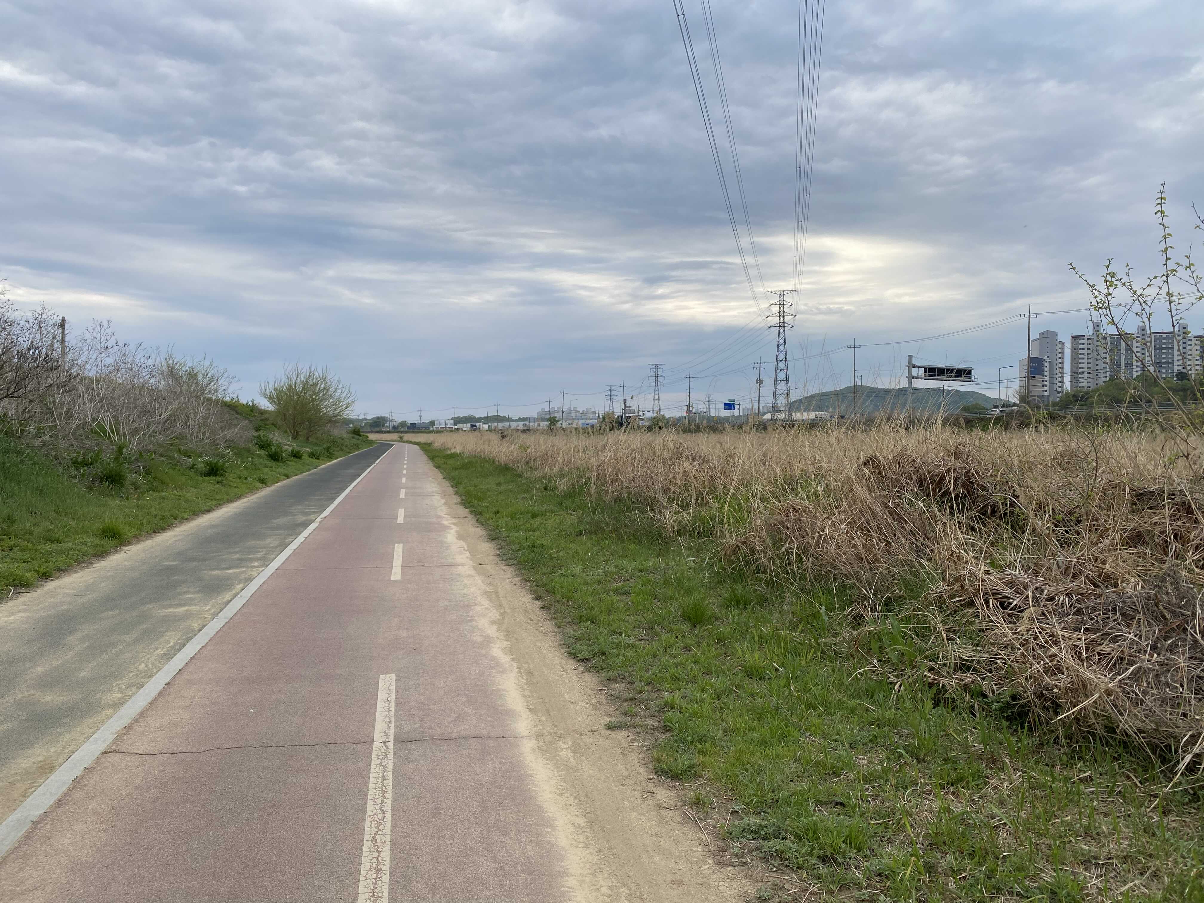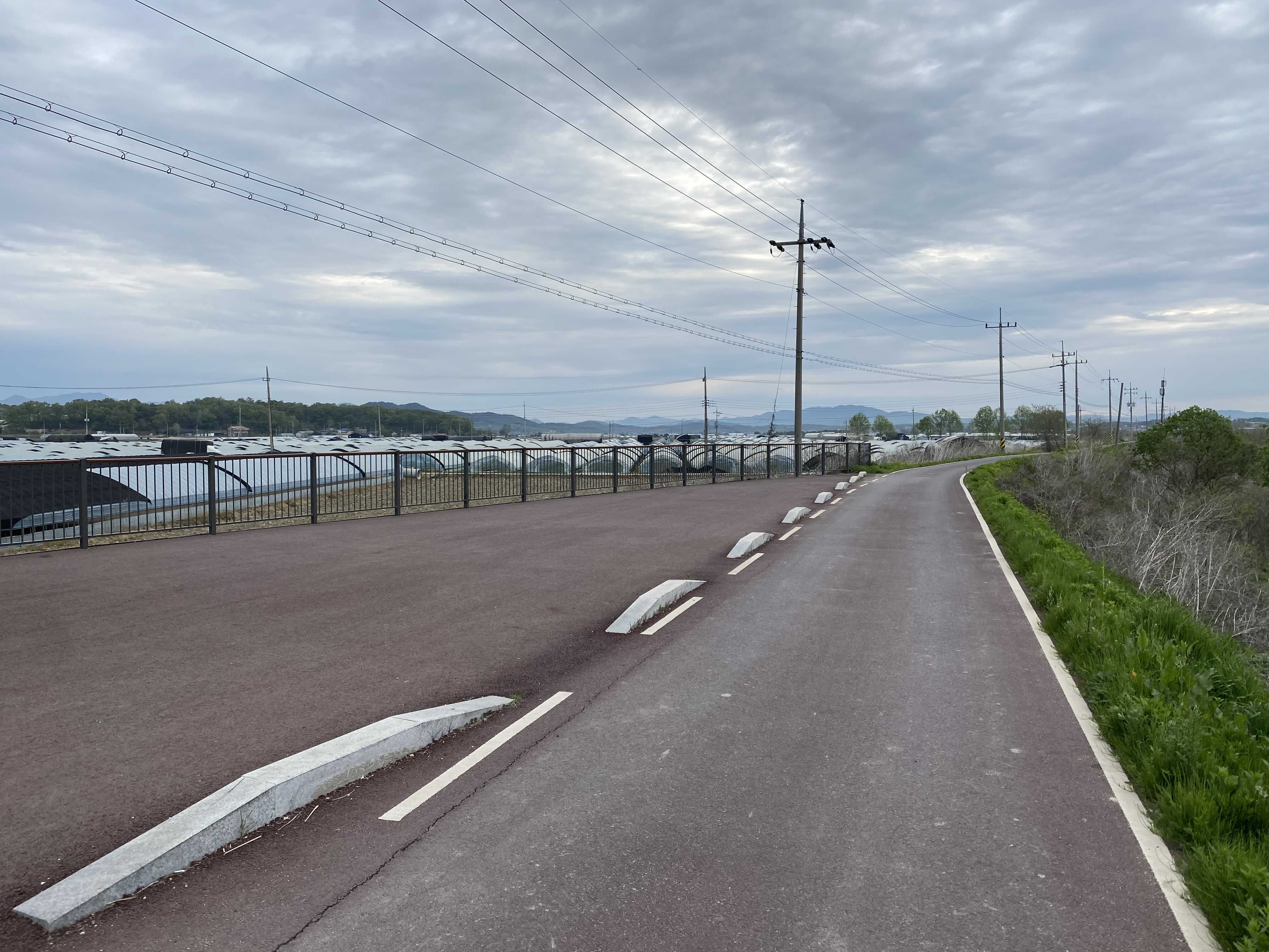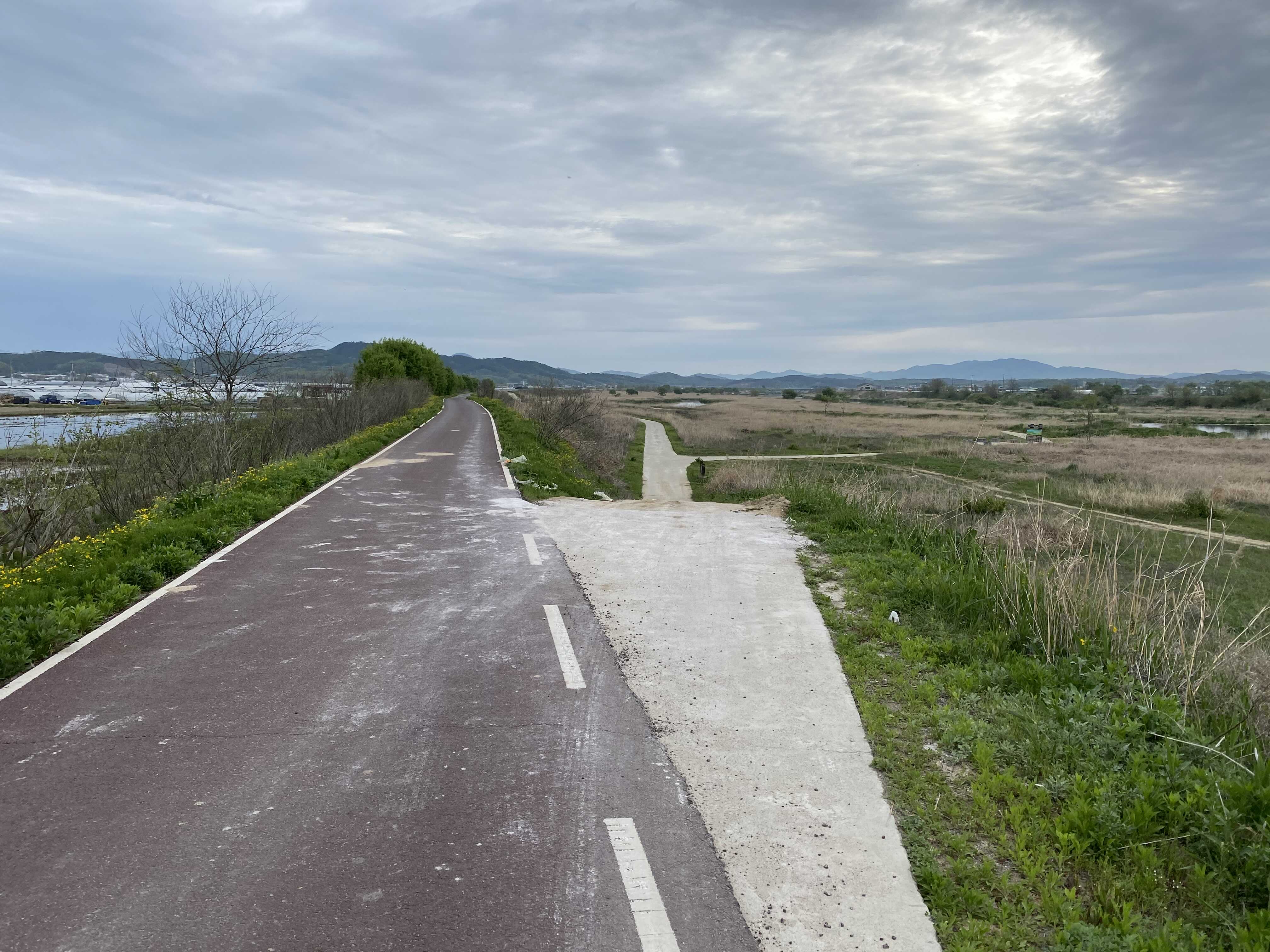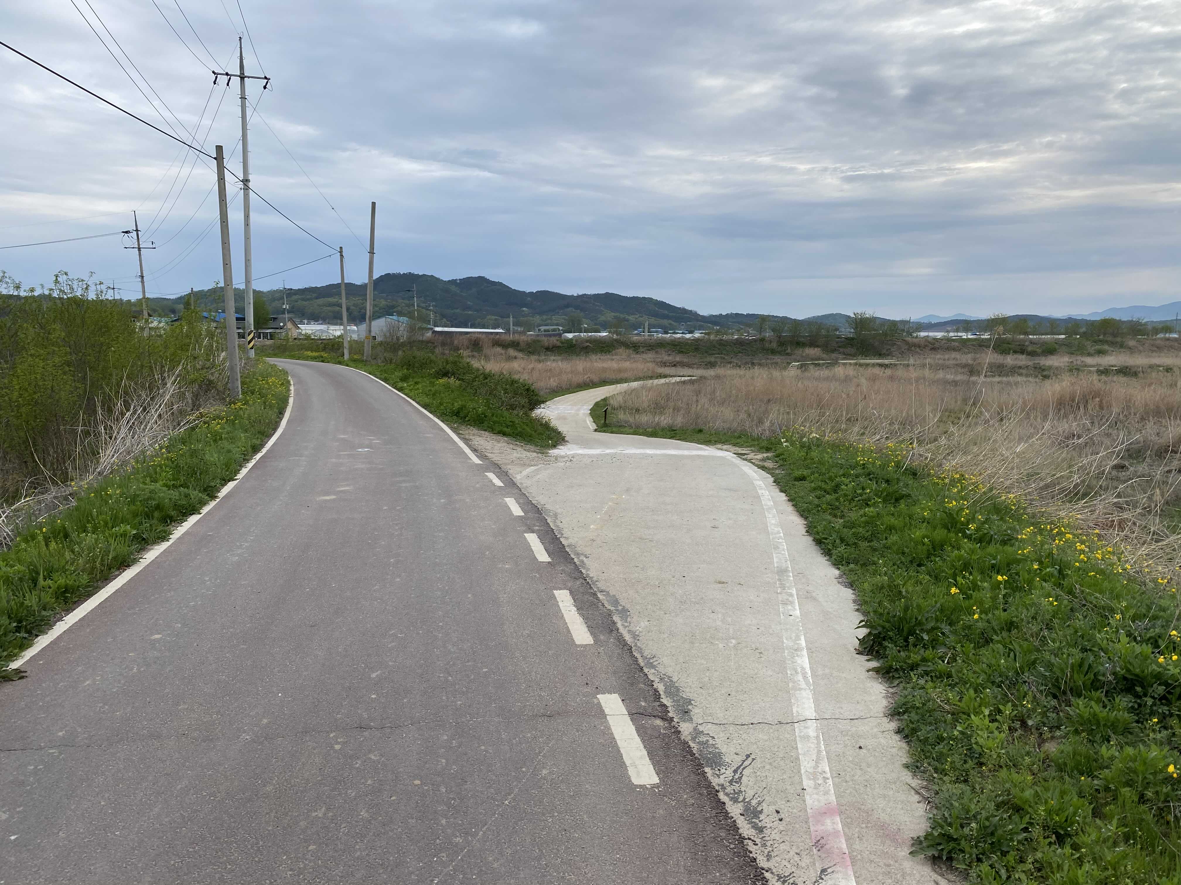 이렇게 백사면 방면으로 쭉 진행하면 차량과 자전거 겸용도로(?)가 나오게 된다. 뚝방길 이라고 표현 하는 것이 맞을런지..