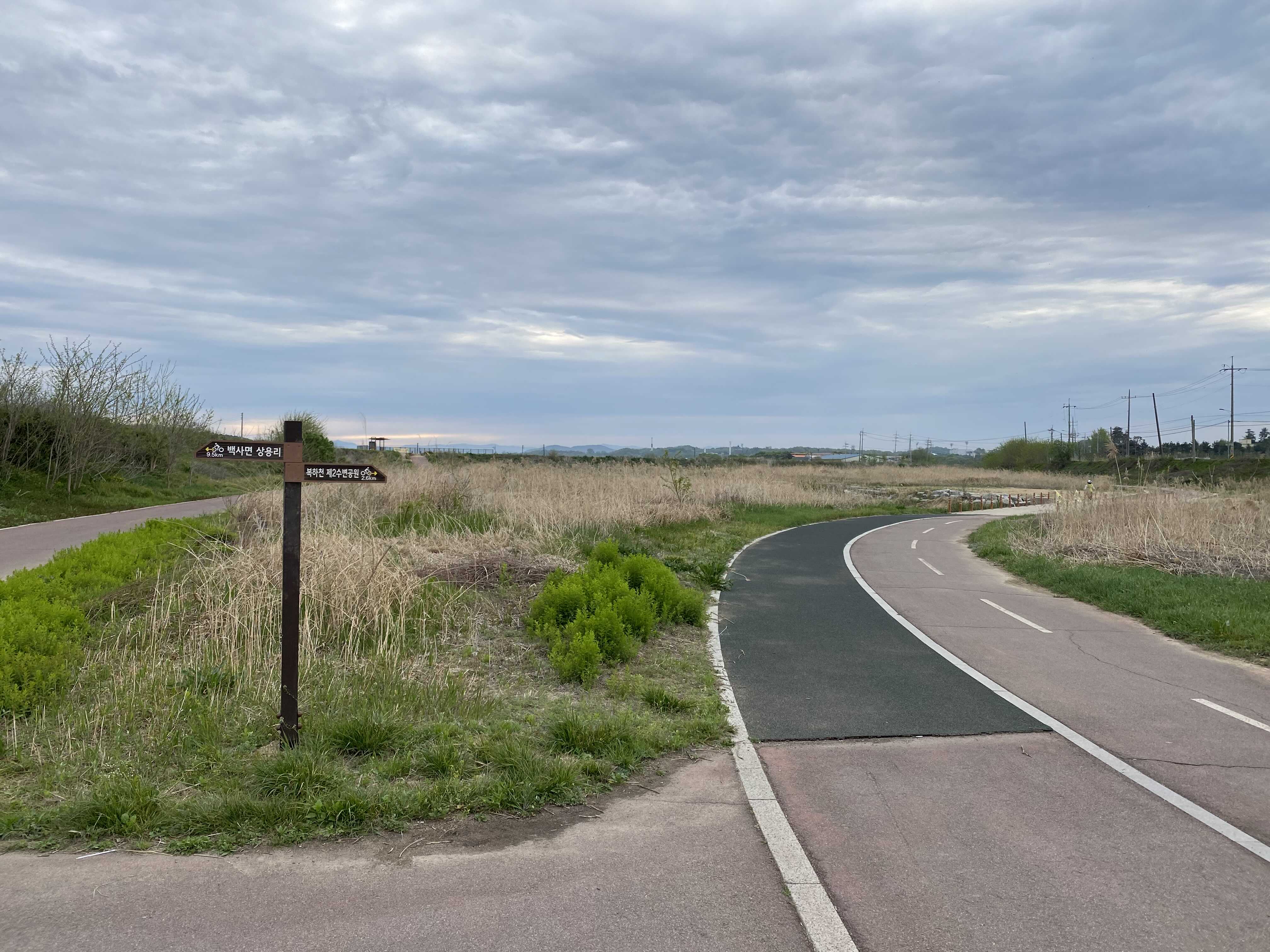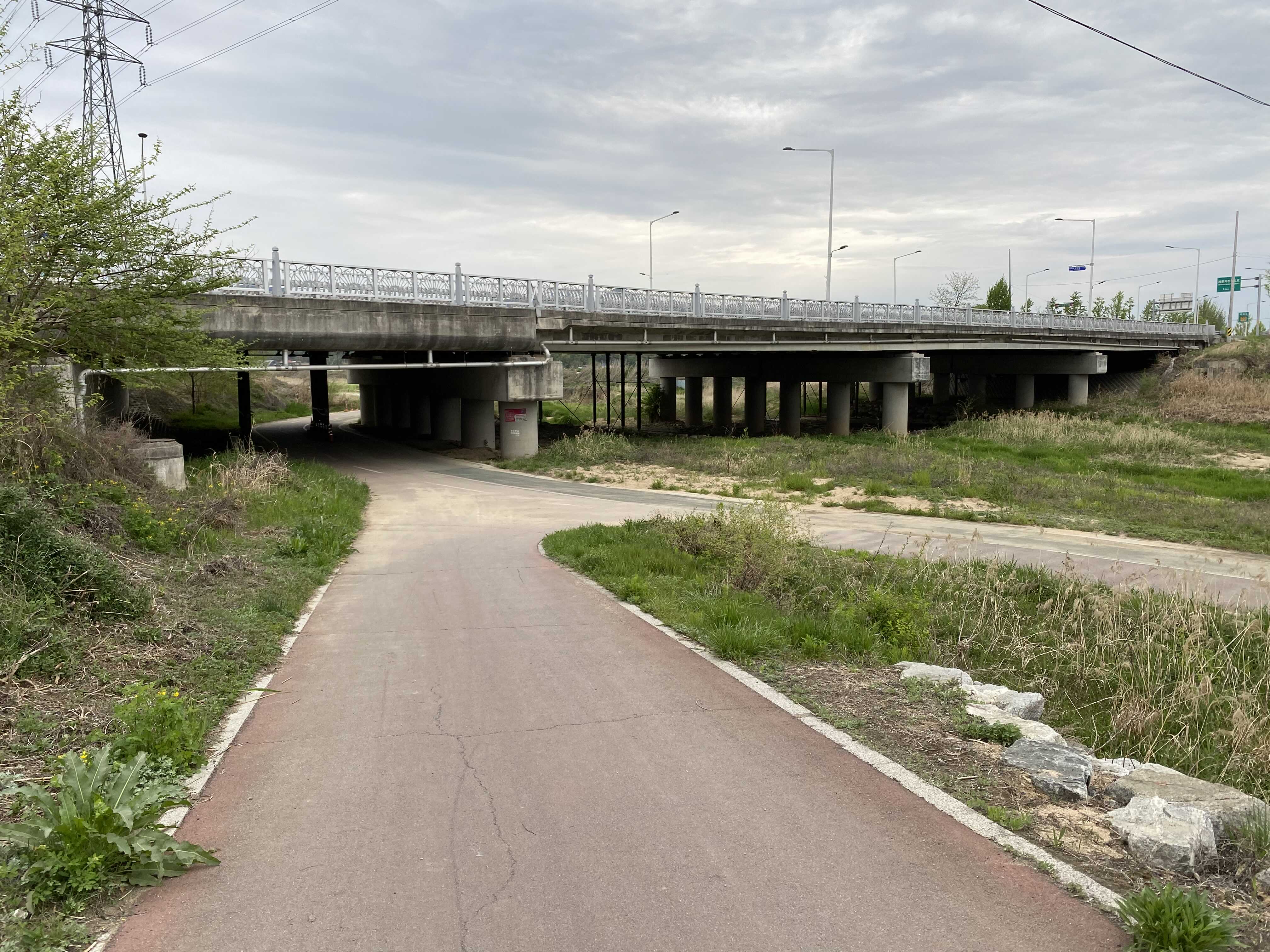 증포사거리에서 자전거도로로 내려오게 되면 좌측으로는 신둔 방향, 우측으로는 복하천 방향이다.