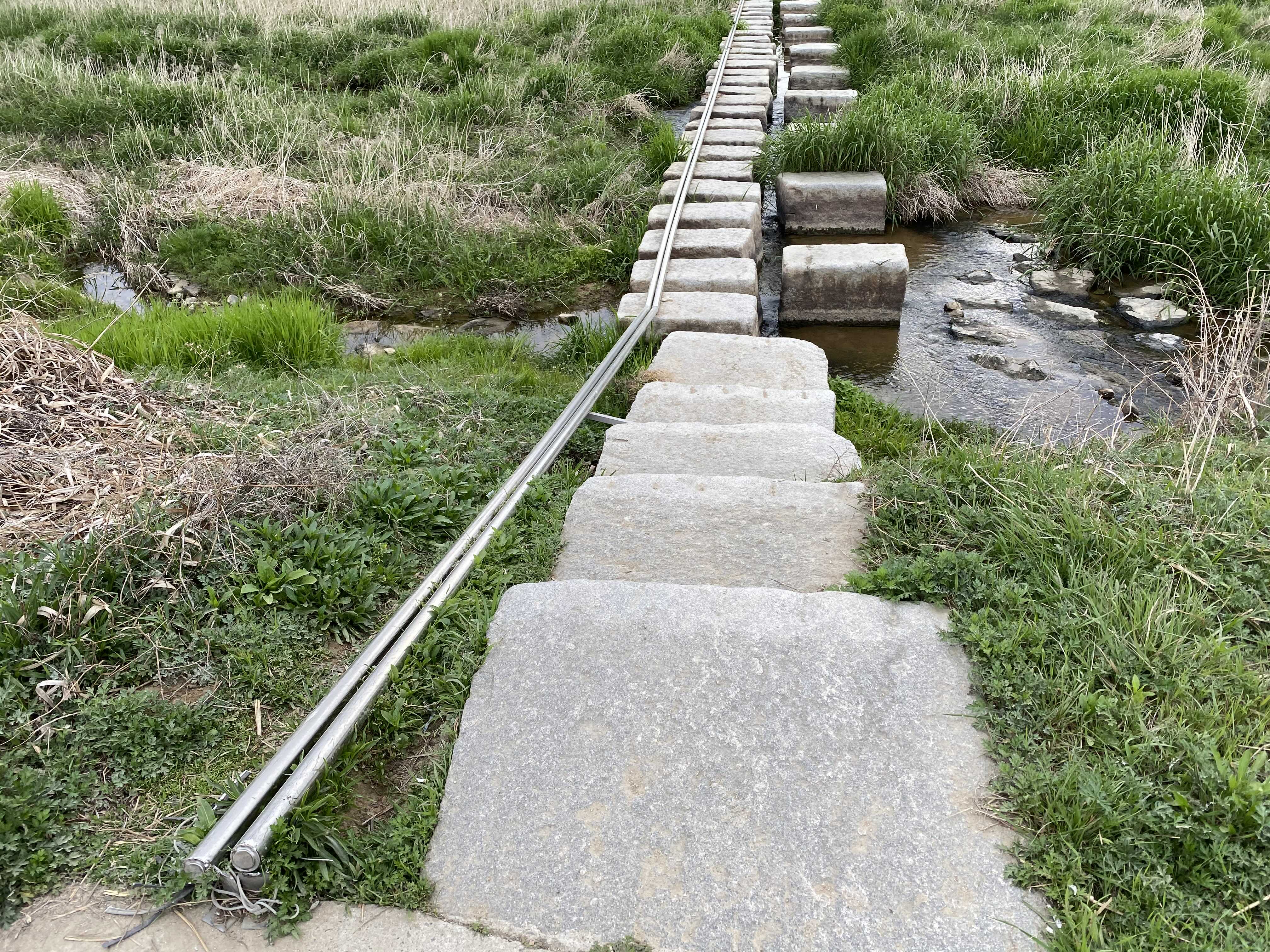 드디어 오늘의 목표 지점인 송말천 돌다리길에 도착하였다. 자전거로 쉽게 돌다리를 건널 수 있게 레일(?)이 설치 되어 있고 자전거를 레일에 거치 해서 건너가면 될 것 같다. 오늘은 이 다리를 건너지 않고 여기서 복귀를 하도록 한다. 다음 리뷰때는 이 다리를 건너 가 보도록 해야겠다.
